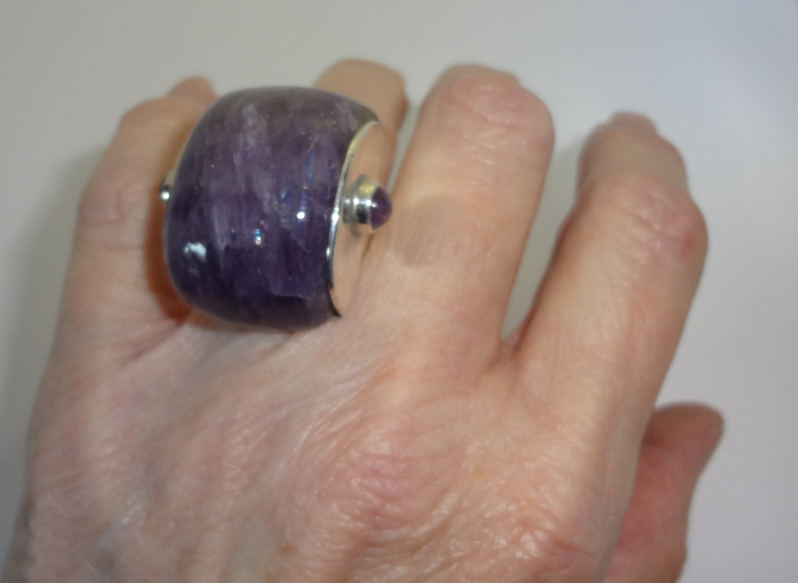 Mexico PEPE CERROBLANCO Sterling Silver & Amethyst Modernist Ring & Earrings Set