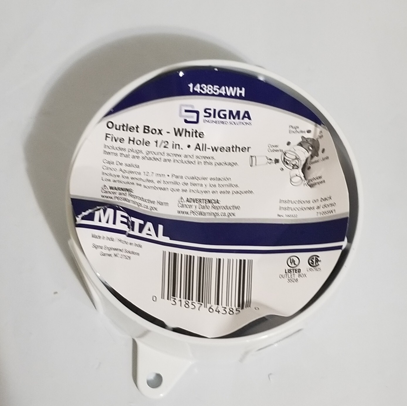 Sigma Electric 5-1/2 in Round Metalic Weatherproof Box 143854WH New Specs