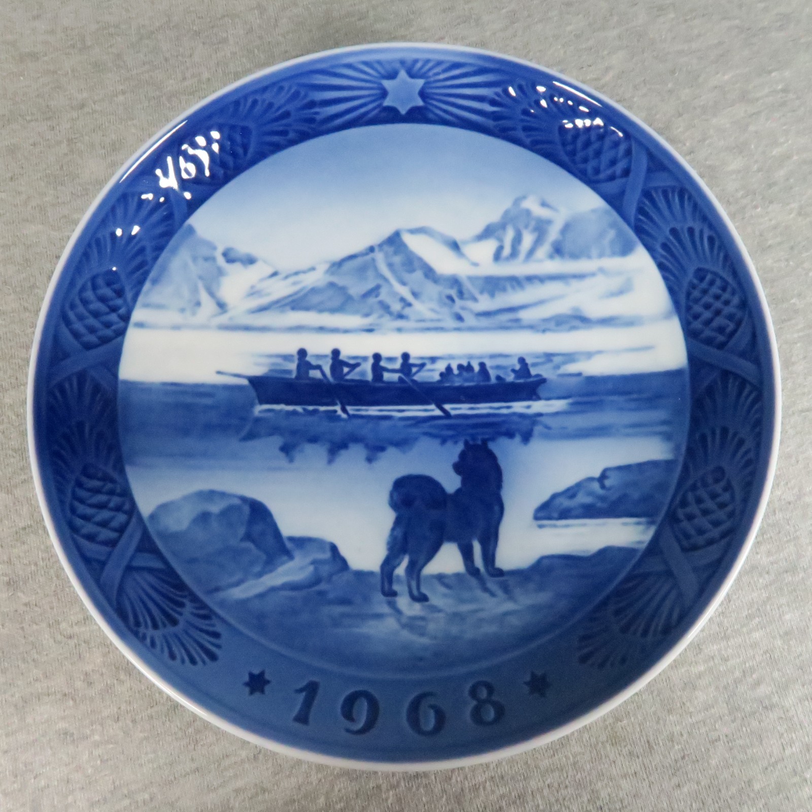 Royal Copenhagen Christmas Plates Blue Set of 9 Vintage Danish Porcelain.Various dates ranging from 1964 to 1977.1964 Fetching the Christmas Tree1965 Little Skaters1966 Blackbird at Christmas Time1967 The Royal Oak1968 The Last Umiak1969 In the Old Farmyard1970 Christmas Rose and Cat1976 Vibaek Water Mill1977 Immervad BridgeCondition: Excellent condition with no signs of damage or repair. Please see photos for details.Measurements: Roughly 7¼" in diameter.Offers are always welcome. Orders are shipped next business day.Trusted seller with over 22,000 items sold.