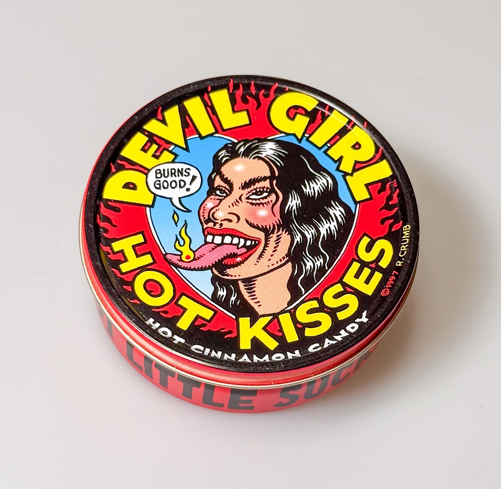 Devil Girl Hot Kisses Candy Tin with artwork by underground comics legend Robert Crumb.