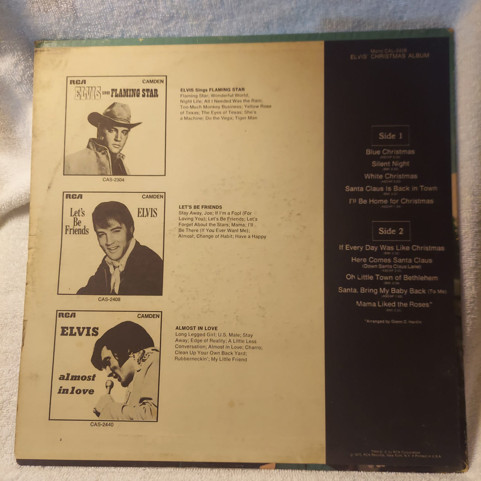 Elvis Presley – Elvis' Christmas AlbumLabel:RCA Camden – CAL-2428Format:Vinyl, LP, Album, Mono, Indianapolis PressingCountry:USReleased:1970Genre:Rock, PopStyle:Blues Rock, Rock & Roll, Pop Rock, Holiday