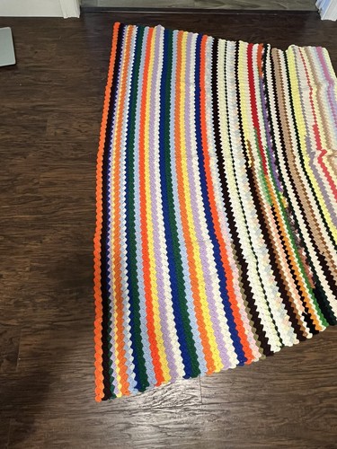 Misshapen Vintage Afghan Hand Made Crochet Knit Granny Throw Blanket Not Even