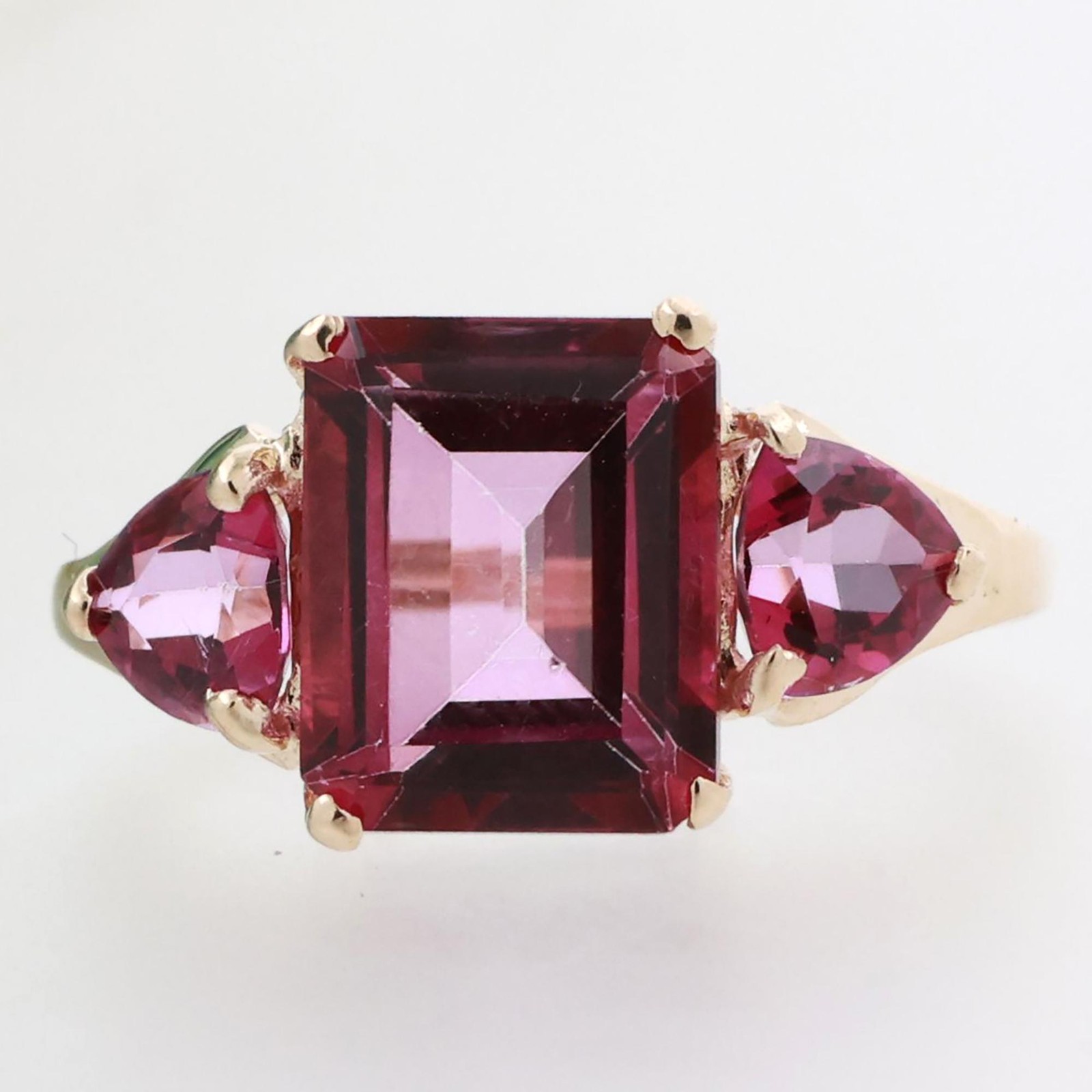 size 7.25. It can be resized up/down 2 sizes for a $50 resizing fee or up/down +2 sizes for a $75 resizing fee.Weight: 2.1 gr total gram weightApproximately 5.47 CTWCenter Gemstone: One Emerald Cut, Lab Created Ruby Gemstone, measuring 10 x 8 mm in Diameter, weighing approximately 4.27 CTAccent Gemstones: 2 Trillion Cut, Lab Created Ruby Gemstones, measuring 5 x 5 mm in Diameter each, weighing approximately 1.20 CTW (0.60 CT each)Inventory number: RG-1422619Condition: Very good preloved condition! Ready-to-wear!Every piece has been professionally cleaned & polished by our Jewelers, graded by our experienced Gemologists & inspected by our quality control department, prior to being carefully packaged & promptly shipped out to you! Reviews Awesome company to deal with, and that’s a rare thing these days. Highly recommend. Such a personal and enjoyable experience, updates daily and quick shipping A+++++++++ thankyou very much , I love my ring Just as described, easy transaction, quick shipping. A+ super fast shipping very responsive beautiful ring i will purchase from you again thank you! Description of Ring is spot on. Delivered! My wife is ecstatic.Thanks for this, Bill. Love it! It’s exactly like it said! Fast shipping! Wonderful communication!! Bid with confidence! Fits perfectly, it is beautiful, I love it! Beautifully packaged as well! Thank you Beautiful charm, packaged in small box with bow! Great transaction, highly recommended. E Bay pro Fast ship c u again Txs Easy folks to deal with, quick return to emails, product as advertised. Verry happy with ring! Gorgeous! Much more beautiful in person. I am so delighted with my purchase. Sized great, wrapped with lovely blue ribbon. Thank you for prompt delivery and very good condition of item. This is a reliable, conscientious seller. A+++ The piece arrived quickly and was packaged well. The piece is as described and I’m so pleased with my purchase. Great to work with A+++++ Love it!! The chain is even prettier in person, just a beautiful sparkler! I’ll be back to buy again. Thank you so much. About Us Gold Reef Jewelers & Estate Buyers offers a large selection of exquisite one-of-a-kind creations of Vintage, Estate, Art Deco, Antique, Designer & Fine Diamond & Gemstone Jewelry. Gold Reef Jewelers & Estate Buyers is a family-owned and operated Jewelry Store and Estate Buying House, located in Delray Beach, Florida. Our family has been involved in the Diamond & Jewelry Industry for over 3 generations. Our pieces of Fine Jewelry are hand selected for our Collection, by our team of Professional Jewelry Appraisers and Estate Buyers, based on their originality & authenticity. Only genuine Designer Brands are offered here for sale. Our Vintage and Estate pieces are professionally polished and restored to bring out their original lustrous beauty. Our Expertise in Fine Jewelry & Diamonds provides you with Luxurious Jewelry at Highly Competitive Wholesale Prices, accompanied by our Professional & Personalized service! We offer an exquisite selection of the finest Jewelry and Diamonds, including Estate, Vintage, Antique Collectibles & Designer Jewelry, as well as Fine Diamond & Gemstone Jewelry. We offer a Dazzling Display of Diamond Engagement Rings and Wedding Ring Sets, at prices that will fit everyone's budget! All of our Designer, Estate & Vintage Jewelry are offered at UNBEATABLE WHOLESALE PRICES! EVERYDAY! The incredible value of our pieces are best seen in person! They are truly so much better in person than the pictures can portray. Our passion is to provide Fine Jewelry that is affordable for everybody! We are renowned for our personalized service and outstanding communication! This assures our online clients of immediate and reliable communication, throughout the entire shopping experience. We welcome your questions, and assure you of our attention to detail, throughout the purchase, shipping and after sales process! We personally invite you to view our exquisite selection of Fine Jewelry on display, and discover for yourself, the special treasures that we have in store for you! Payment We accept payments via PayPal, all Major Credit Cards, and Google Pay. All payments must be received within 3 days from the date of purchase. Please message us, if special arrangements need to be made. International Buyers are responsible for all customs duties, taxes and related fees. import duties, taxes, and charges are not included in the item price or shipping cost. These charges are the buyer's responsibility. Please check with your country's customs office to determine what these additional costs will be, prior to purchasing. Buy With Confidence We want you to buy with complete confidence. If you're not completely satisfied with your purchase, it can be returned to us, within 30 days, for a 100% FULL MONEY BACK GUARANTEE! We are completely committed to doing everything we can to ensure your complete satisfaction with our products & services. It is our “No.1 PRIORITY”. If, for any reason, you are not completely satisfied with your transaction, please give us a chance to MAKE IT RIGHT FOR YOU, by contacting us directly, so that we can help resolve any issues you may have. We assure you of our service commitment and will respond within 24 hours. exquisite engagement rings We offer a Dazzling Display of Exquisite Diamond Engagement Rings and Wedding Ring Sets, at prices that will fit everyone's budget!! View all ASK US ABOUT OUR 90-DAY INTEREST-FREE LAYAWAY PLAN homeabout us Feedbackcontact us © COPYRIGHT 2022 GOLD REEF. All rights reserved eBay Design by OCDesignsOnline