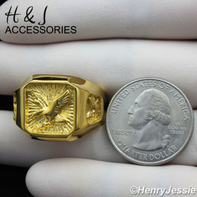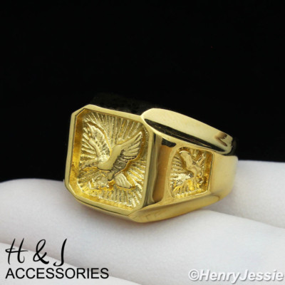 MEN Stainless Steel Gold Plated EAGLE Square Ring Size 8-13*AGR122