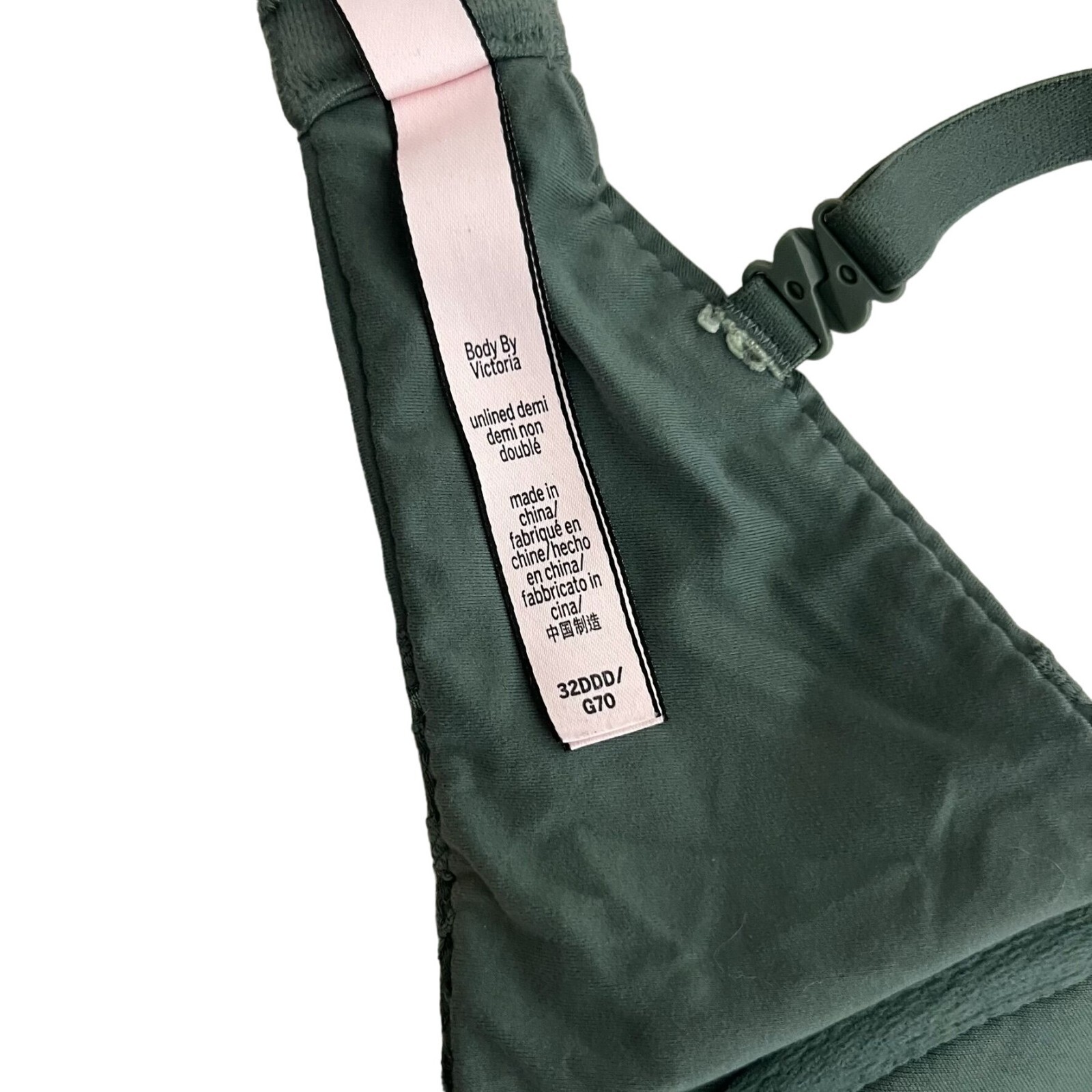 Victoria's Secret green unlined Demi bra with lace cups, push up lining on bottom of cupsWomen's 32DDDCondition is excellent, no flaws notedRetail $60