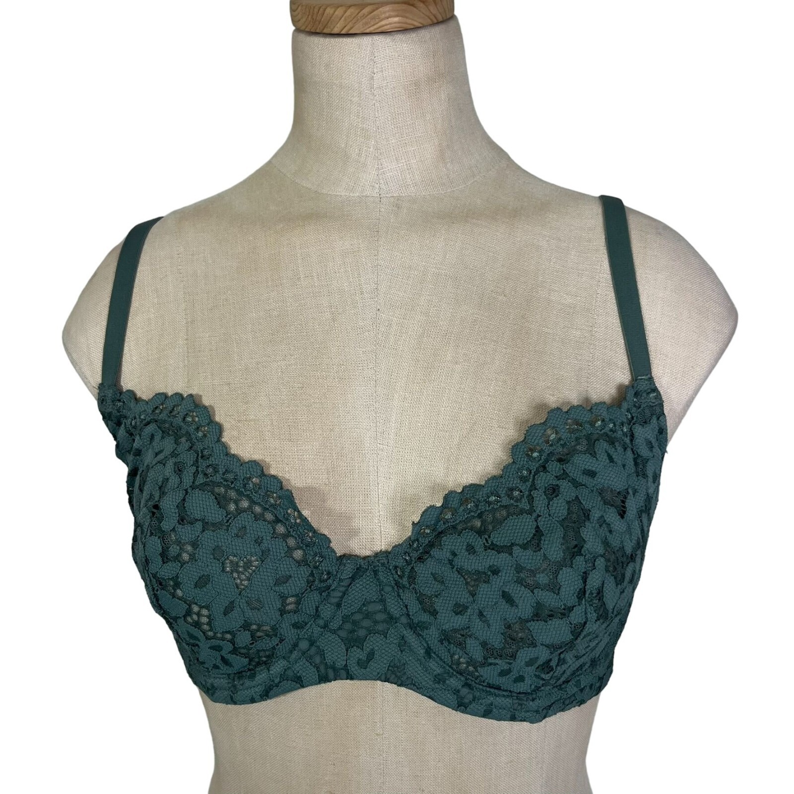Victoria's Secret Women's bra 32DDD Green unlined demi lace cups adjustable stra