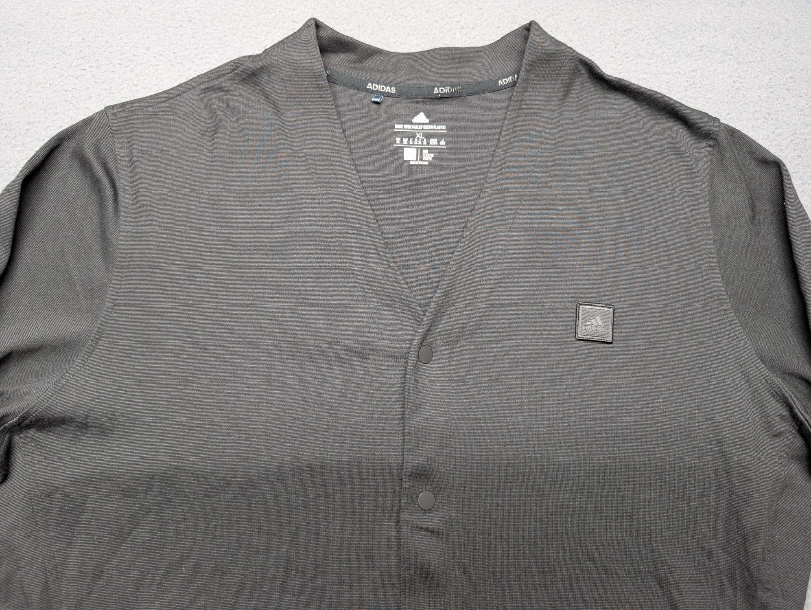 size extra large XL. Black in color. Embroidered with Adidas on the front. Has snap closures on the front. Adidas style HA9108. See the last few photos for approximate measurements. Please ask any questions you may have before purchasing. Thanks for looking and please check out our other items.