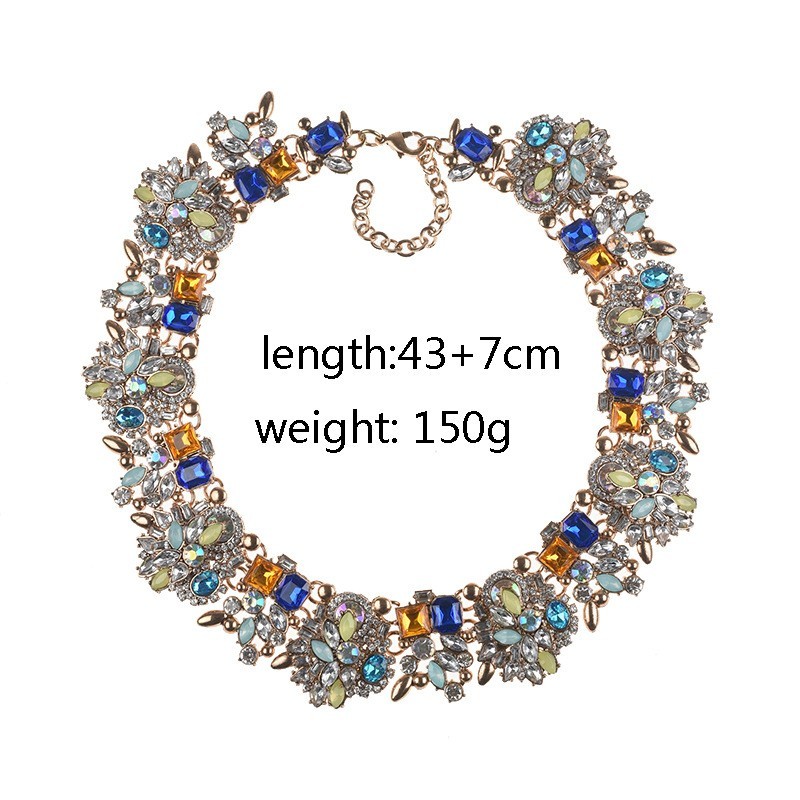 color crystal set provides maximum glamour and makes accessorizing simple for any formal event or special occasion.Set Details:Necklace Style: Choker/Collar, featuring Blue, Yellow, and Teal stones.Earring Style: Drop/Dangle, featuring Gray and Clear iridescent stones.Necklace Total Length: 50 cm≈22.45 inches.Earring Length: 6.2 cm≈2.44 inches.