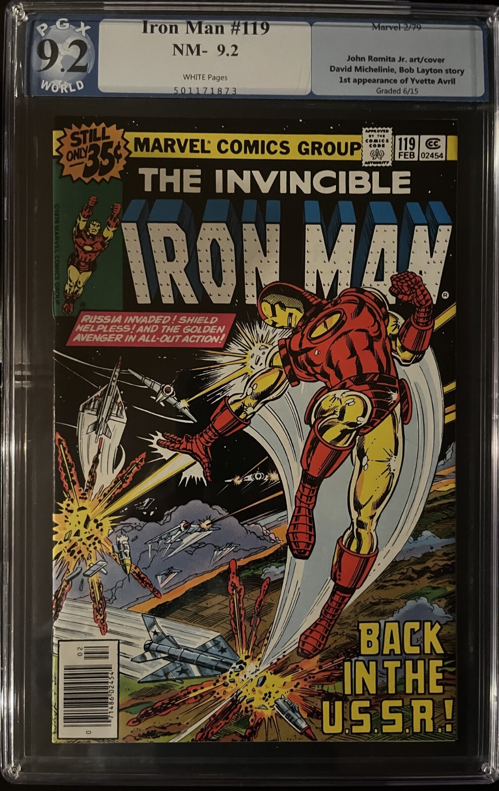 IRON MAN #119 PGX 9.2 NM- Marvel FEB 1979 WHITE Pages 1st app. YVETTE AVRIL Specs