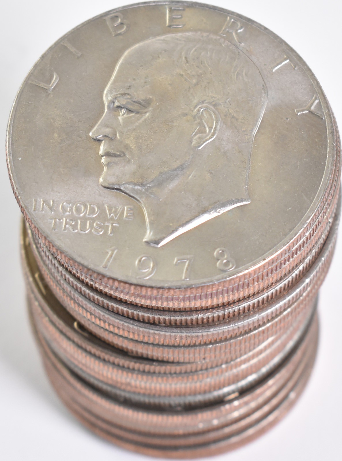img 1978-P AU/BU/Unc Eisenhower Ike Dollar Clad Roll 20 Coins Lot This is a stock image, the quality of the item you will receive will be equal to or better than the one in the photo. Satisfaction guaranteed. ST11-3440 [16z] *fp Our Policies: Customer Service is Our Priority- We take customer service seriously and work hard to ensure you have an exceptional shopping experience. Have questions? Need Help with your order? Send a message, email, or call us. We will work hard to answer all of your questions. We are here to help! Reputation: 100% Customer Satisfaction is our most important goal. We want you to keep coming back, and to share about your positive experience with Mbarr. If you are not completely satisfied with your purchase, contact us through eBay messaging. Authenticity: We stand behind all of our items 100%. We’ve been delivering authentic, quality products on eBay since 1999. Returns: We offer Free 30 day returns on all eligible purchases (bullion and live sales exempt). Message us to get a Return Authorization Number, , which will allow us to issue you a timely refund. Items must be in the complete original packaging to be eligible for a full refund. Returns that do not meet requirements are subject to a 15% restocking fee or refusal. Bullion & eBay Live Exceptions: Orders for Bullion products cannot be canceled, returned, exchanged, or refunded for any reason - see the ‘Bullion Products’ section of our store policies for more information. Orders for items won, sold, bid on, and/or purchased during eBay Live sessions are priced for final sale. They cannot be canceled, returned, exchanged, or refunded for any reason. Payments: Payments are managed by eBay. Payment is due at time of purchase. Items purchased in an auction require payment within 3 days of purchase. Orders left unpaid on day 4 will be canceled. We accept PayPal, credit & debit, e-check, and money order. Shipping: We provide FREE shipping with tracking on orders in the U.S. Order Handling Time is typically five (5) Standard Business Days. The date your order is placed is Day Zero (0). We reserve the right to make Carrier and Service level selections. See full store policies for more info. Photography: A picture is worth 1000 words, and we’ve spent 1000’s of hours working to perfect our photography. We photograph in a way that allows you to see what the item will look like in hand. We do not enhance or digitally alter any of our images. Stock Images: We use "Reference/Stock Images" to represent stock products. The ‘stock images' used in our listings are created by Mbarr Coins for reference only to depict the quality of the item you will receive. You will NOT receive the exact item that was photographed to create the image. However, the actual item you will receive is guaranteed to be similar to that shown and as described. Grading: Grading is a subjective ‘art’. We can always give you our opinion, but we are NOT graders. Grade qualifiers & approximations given in titles & listing information are our best estimation. We photograph and title coins as accurately as possible. - M Barr Coins Powered by SixBit's eCommerce Solution