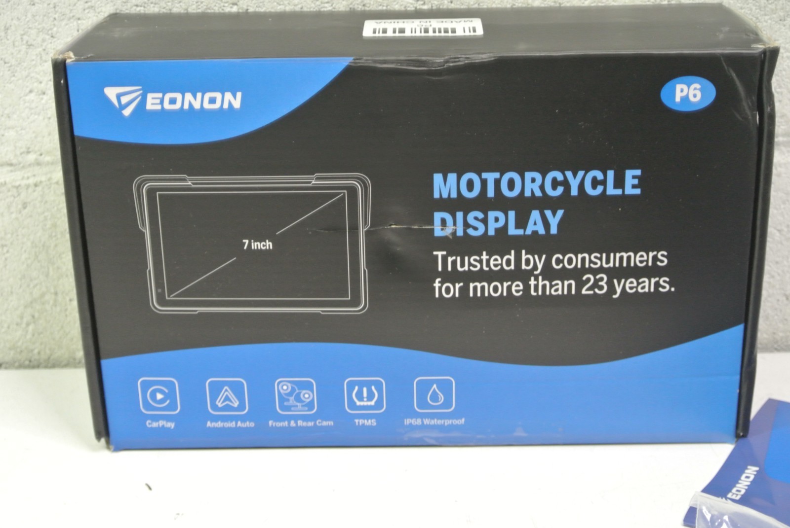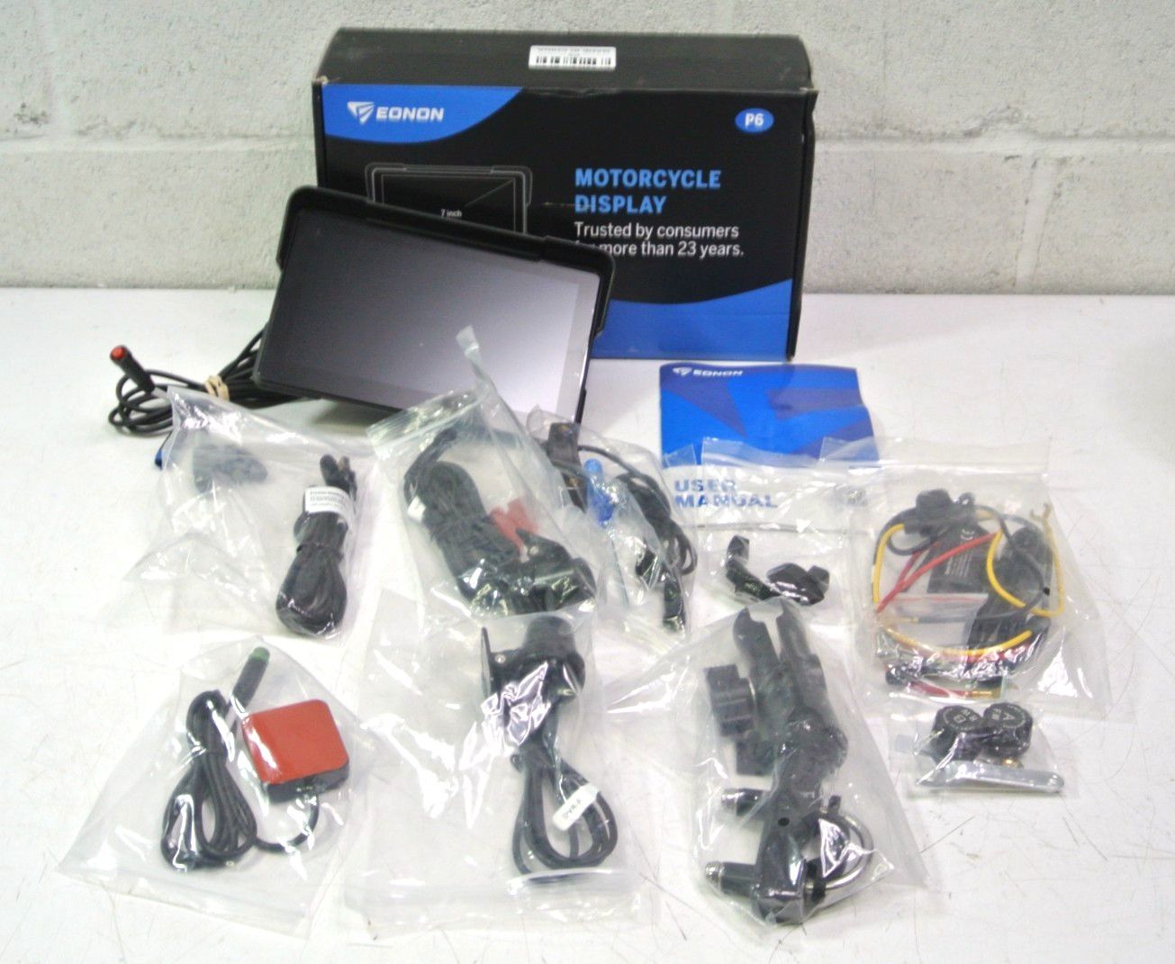 Item available today is the, Eonon P6 Motorcycle Navigator Wireless CarPlay Android Auto 4K with Dual Camera. This is a new item in opened packaging. Ready to use. Please see photos for more details. Items in photos are what come with the listing. Thank you for shopping small business. Terms of SaleListing is for item and/or