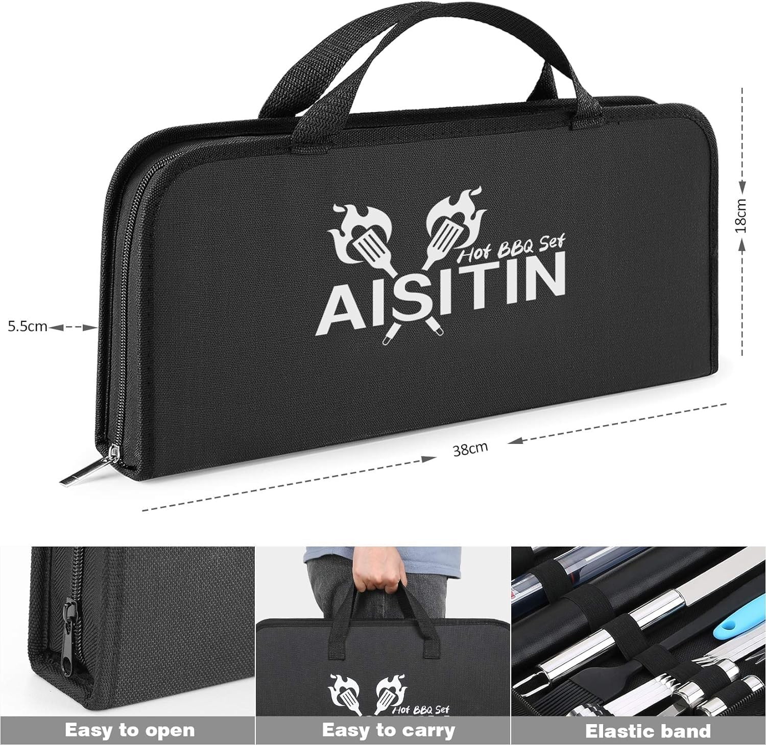 accessories. Make them in order, you can pick it up easily when open the bag.【Ideal Gift Set】: AISITIN grill tools set is an ideal gift for Father's Day, birthday, Halloween, Thanksgiving Day, Christmas,etc. It’s operated easily and very friendly both for newbies and master. Also a perfect option for organizing beach parties and camping barbecues.【Practical Grill Tools Set】: Each grill accessory we produce embodies a romantic and innovative commitment.And we provide professional and high-quality grill