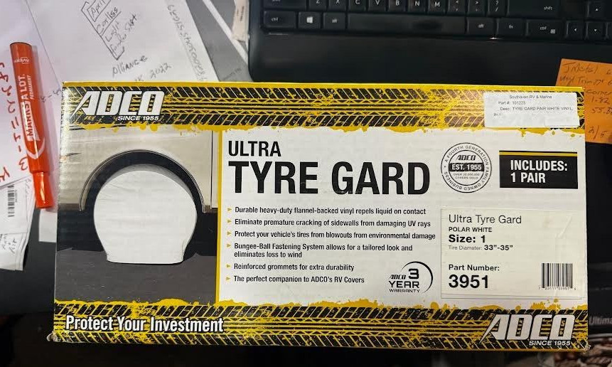 Keep your RV tires protected from harmful UV rays and other environmental elements with the ADCO Ultra Tyre Gard 3954 tire covers. These covers are designed to fit snugly over your tires, keeping them clean and in great shape for your next adventure on the road. Made by ADCO, a trusted brand in the RV industry, these covers are a must-have for any RV owner looking to extend the life of their tires. Constructed of high-quality materials and built to last, these tire covers provide superior protection without breaking the bank. They are easy to install and remove, making them a convenient addition to any RV accessory collection. Whether you're a full-time RVer or just enjoy the occasional road trip, the ADCO Ultra Tyre Gard 3954 tire covers are an excellent investment for your RV.