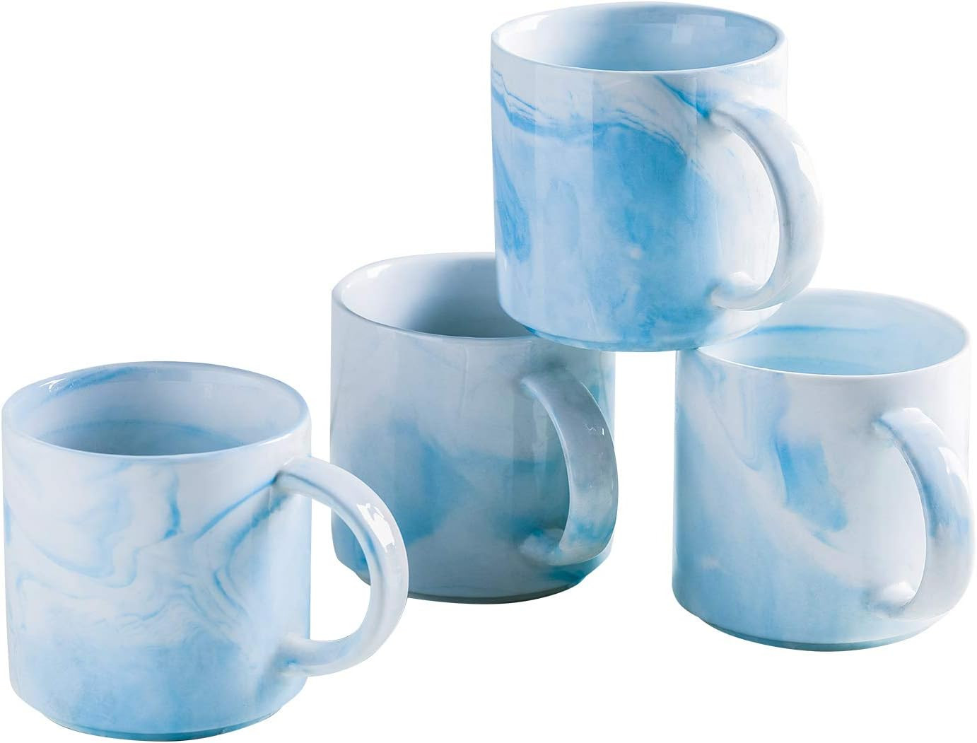 12Oz Blue Marble Ceramics Coffee Mug Set of 4, Drinking Cups Set, Stackable Latt