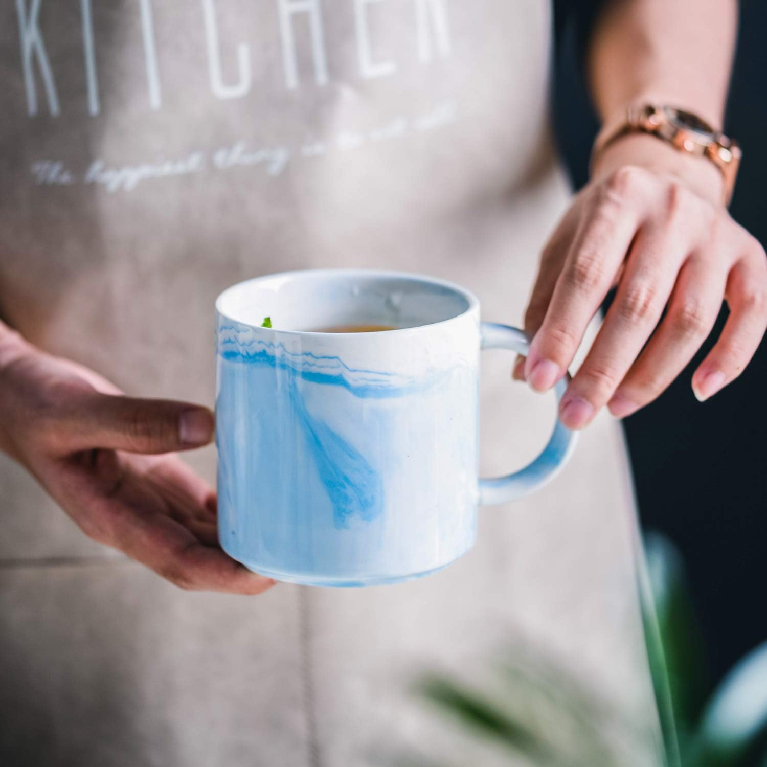 size with 12oz,fit for daily hot coffee tea or water with family or friends. Natural Marble Design Those Yundu ceramic mugs are made by calcining pure natural marble soil, which is of first-class quality. The texture of the mug is perfectly natural, unique and attractive. Multi Purposes - Versatile These ceramic cups are perfect for coffee, tea, cocoa and cereal. With unique and elegant colors that add a touch of