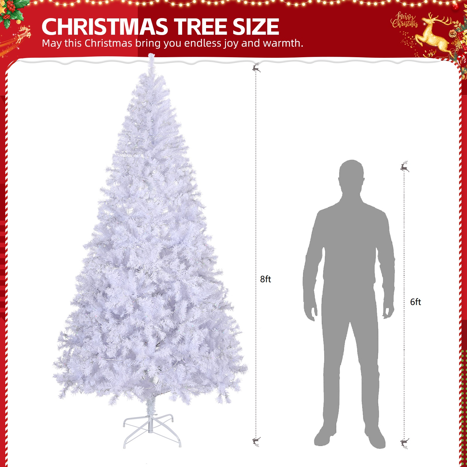 color choice not only creates a stunning visual contrast but also enhances the festive atmosphere, making your ornaments pop against the pristine white background.4. Built to Last: Crafted from premium, flame-retardant PVC, this tree is built to last for many holiday seasons. The sturdy, thick branches are capable of holding your Christmas ornaments, while the reinforced metal stand ensures that your tree remains stable and secure throughout the season.5. Easy Setup: The hinged branches automatically drop into place, and assembly takes just three simple steps. Once setup, simply fluff the branches for a full, lush look that's ready for your favorite decorations.8FT Specifications:1. Overall Height: 8 FT2. Tree Width: 47.2in / 120cm (Measured from Tree's Widest Point)3. Branch Tips: 15004. Color: White5. Branch Material: PVC6. Branch Tip Length: 7in7. Base Material: Iron8. Base Diameter: 21.7in / 55cm9. Number of LED Lights: 20010. LED Light Color: Cold White Light11. LED Light Modes: 8 Modes12. Power Cord Length: 9.8ft / 3m13. Plug Type: US Plug9FT Specifications:1. Overall Height: 9 FT2. Tree Width: 52in / 132cm (Measured from Tree's Widest Point)3. Branch Tips: 20004. Color: White5. Branch Material: PVC6. Branch Tip Length: 7in7. Base Material: Iron8. Base Diameter: 25.6in / 65cm9. Number of LED Lights: 65010. LED Light Color: Cold White Light11. LED Light Modes: 8 Modes12. Power Cord Length: 9.8ft / 3m13. Plug Type: US PlugPackage Includes:1 x Christmas Tree1 x Tree Stand1 x Remote Control1 x Power Adapter Shipping + 1. Ship worldwide from New Jersey by reliable shipping companies -- USPS, UPS, FEDEX, DHL, etc., and only to VERIFIED PAYPAL ADDRESS. Transport Delivery ETA. Package handling only takes 1 business day at our warehouse, so please make sure entering correct payment and shipping information before checking out. Once your payment is completed, we are not going to accept any more changes to your order. 2. International Buyers – Please Note: a. Import duties, taxes and charges are not included in the item price or shipping charges. These charges are the buyer's responsibility. b. Please check with your country's customs office to determine what these additional costs will be prior to bidding/buying. 3. Please check your shipping address carefully before checkout, it can't be changed if order completed. 4. Orders placed on weekend will be shipped within 2 days.Notification of shipment with tracking number will be sent to buyers. 5. Standard shipping: 2-7 business days Expedited Shipping: 2-3 business days One-day Shipping: 1 business day International shipping: Varies 6.Ship within 1 business day once payment completed. Notification of shipment with tracking No. will be sent to buyer. 7.We offer discounts for combine shipping. Please contact us first if you need combine shipping, and an invoice with discount will be sent to you. 8.Please allow 5 business days for delivery to US destinations on any eBay orders and 14 business days for delivery to any International destinations. We highly recommend our buyer choose priority/expess mail for international delivery which is much more stable. Payment + Payment should be sent within 8(EIGHT) days of auction closing. Returns + 1. Refunds given only if item DOA and cannot be replaced via PAYPAL . If so, Please contact us with 5 days since you receive the item and and return to us within 30 days from the delivery date for exchange or refund. 2. If you need return, please contact our customer service representative, let us know the detailed problem and send us some pictures for confirmation. Feedback + If you are dissatisfied for any reason, please donot be quick to leave negative/neutral feedback. We work hard to make sure EVERY CUSTOMER 100% SATISFIED and resolve any problem for you and always leave positive feedback to all our customers. Contact us + Work Time:Monday to Saturday Reply + All replies will be sent to your email box, if you don't get response within 24 hours (Sat. & Sun. excluded) please check your eBay My Messages in case that our emails will be filtered automatically by your settings. Copyright © 2021 ecmonster. All rights reserved.