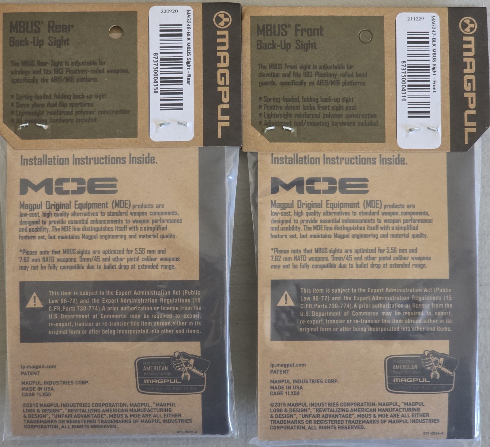 Mągpul Flip Up Back Up Sight Front / Rear Sights Specs