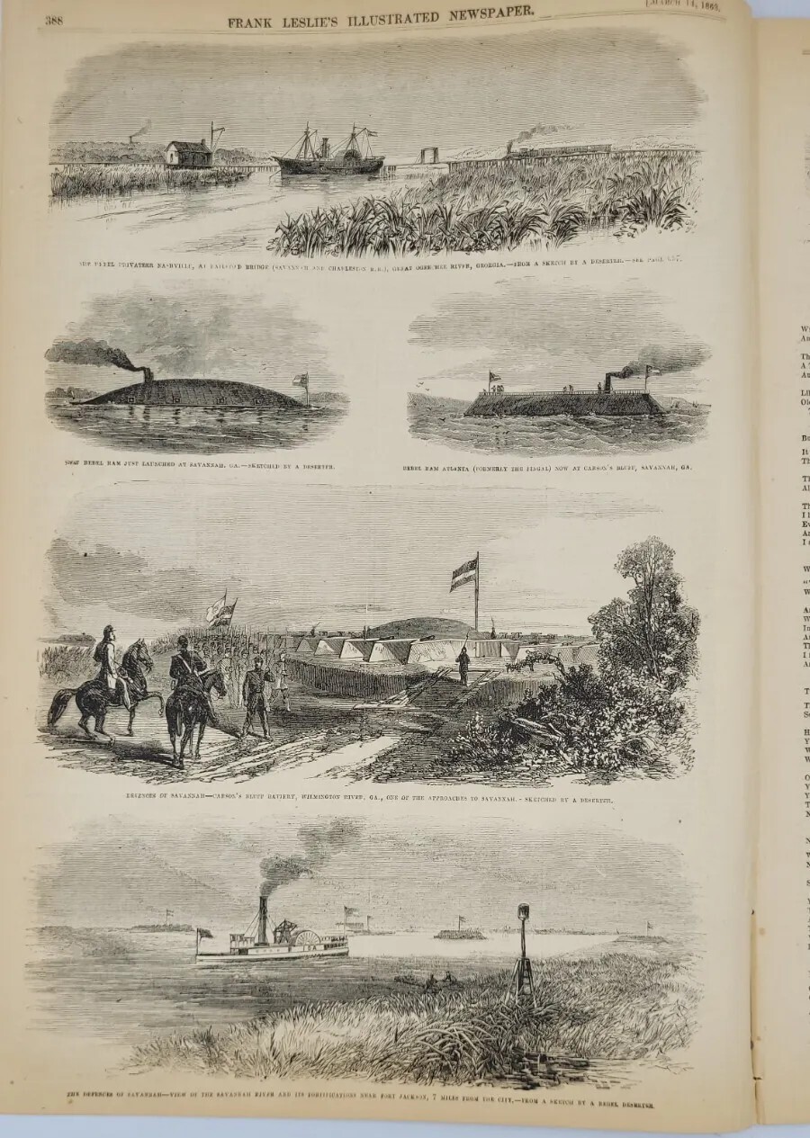 Frank Leslie's 3/14/1863 Newspaper – Defenses of Savannah, Steamer Alabama