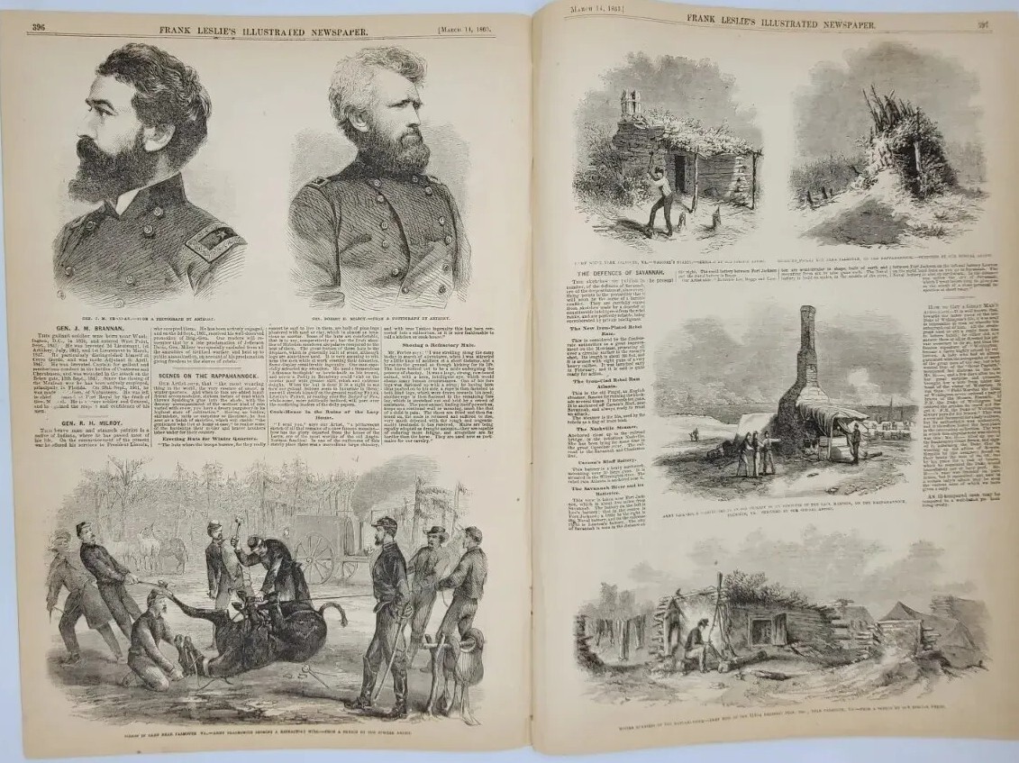 Frank Leslie's Illustrated Original and CompleteCover: Capt. Healy, and three men of the 9th Connecticut capturing a sloopFull Page Print: The War in Louisiana-Return of a Foraging Party of the 24th Regiment Connecticutsmaller prints of Gen. Milroy, Gen. Brannan, Shoeing a mule, Winter quarters etc Full Page Print: The Confederate Privateer Steamer Alabama-Captain SemmesFull Page Print: The Defenses of Savannah 5 scenesCondition: good, normal aging (see pictures)will combine shipping if multiple items are purchased