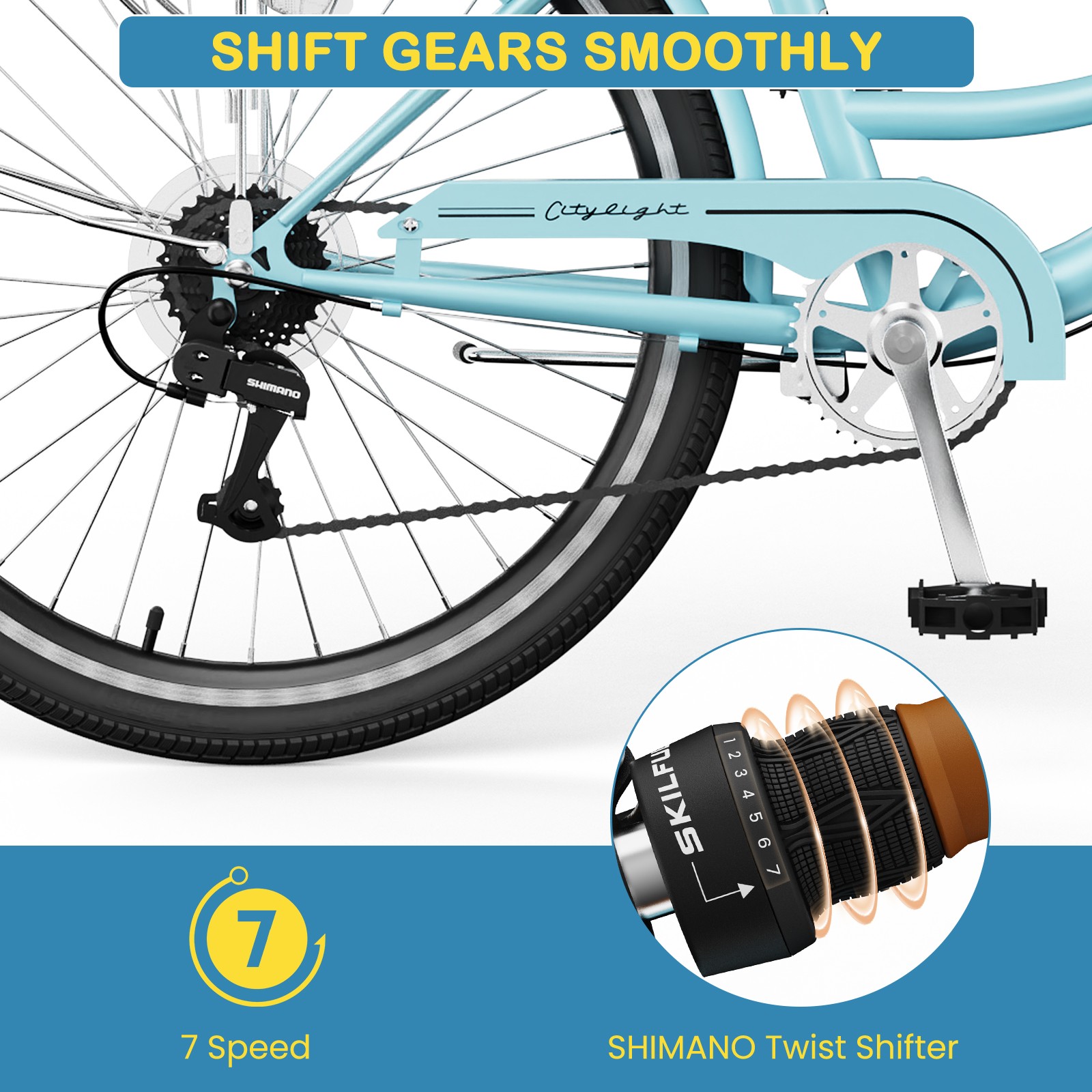 .cs-head .cs-head .dc-cs:hover ,.dc-dock:hover .dc-cs .dock-rb .cs-top .cs-top @media (max-width:480px) .cs-top }.cs-top .cs-append ,.cs-bottom .cs-append ,.cs-bottom .cs-append , @media (max-width:480px) .cs-bottom }.cs-append ,.cs-bottom .cs-append, @media (min-width:640px) .cs-list-col7 .cs-list-col8 .cs-list-col9 .cs-list-col10 }.cs-list .cs-list:after,.cs-list:before .cs-list:after .cs-list>li .cs-append,.cs-bottom .cs-list-col6>li .cs-list-col7 .cs-list-col7>li .cs-list-col8 .cs-list-col8>li .cs-list-col9 .cs-list-col9>li .cs-list-col10 .cs-list-col10>li .cs-list-col11 .cs-list-col11>li .cs-list-col12 .cs-list-col12>li .cs-list-collapse .cs-list-collapse>li @media (max-width:800px) .cs-list .cs-list>li }@media (max-width:640px) .cs-list .cs-list>li }@media (max-width:480px) .cs-list .cs-list>li }.cs-list .cs-list a .cs-list a:hover .cs-list .cs-list .cs-list .cs-list .cs-list .cs-list .cs-list .cs-list .cs-list .cs-list .dc-cs * .cs-top .cs-append ,.cs-bottom ,.cs-top p:empty+hr hr+span.ebay .dc_tracker_img #ds_div>.dc_tracker_img:last-of-type [data-lid="404912629787"] [data-lid="404912629787"] [data-lid="404912629787"] [data-lid="404912629787"] [data-lid="404912629787"] [data-lid="404912629787"] [data-lid="404912629789"] [data-lid="404912629789"] [data-lid="404912629789"] [data-lid="404912629789"] [data-lid="404912629789"] [data-lid="404912629789"] [data-lid="186810075696"] [data-lid="186810075696"] [data-lid="186810075696"] [data-lid="405884372017"] [data-lid="405884372017"] [data-lid="405884372017"] [data-lid="405884372017"] [data-lid="405884372017"] [data-lid="405884372017"] [data-lid="186473442123"] [data-lid="186473442123"] [data-lid="186473442123"] [data-lid="186473442123"] [data-lid="186473442123"] [data-lid="186473442123"] [data-lid="186383551587"] [data-lid="186383551587"] [data-lid="186383551587"] [data-lid="186383551587"] [data-lid="186383551587"] [data-lid="186383551587"] [data-lid="405840650352"] [data-lid="405840650352"] [data-lid="405840650352"] [data-lid="405840650352"] [data-lid="405840650352"] [data-lid="405840650352"] [data-lid="187199663226"] [data-lid="187199663226"] [data-lid="187199663226"] [data-lid="187199663226"] [data-lid="187199663226"] [data-lid="187199663226"] [data-lid="185914163075"] [data-lid="185914163075"] [data-lid="185914163075"] [data-lid="185914163075"] [data-lid="185914163075"] [data-lid="185914163075"] [data-lid="405404629670"] [data-lid="405404629670"] [data-lid="405404629670"] [data-lid="405404629670"] [data-lid="405404629670"] [data-lid="405404629670"] [data-lid="406108332715"] [data-lid="406108332715"] [data-lid="406108332715"] [data-lid="405309274283"] [data-lid="405309274283"] [data-lid="405309274283"] [data-lid="405309274283"] [data-lid="405309274283"] [data-lid="405309274283"] Womens Bike 7 Speed, 24 26 inch Beach Cruiser Bikes for Women, Step Through Adult Bicycle with Front Basket for City Commuting Dear buyers, we not only sell light green, we also have other colors. If you want to replace it, you can contact me after payment to replace it directly! 【Classic & Hiten Steel Frame】: The combination of three-spray and four-bake process with excellent welding technology makes it a durable and stable cruising bike. Combining fashion with simplicity, the appearance is classic yet understated.【Comfortable & Ergonomic】: City bike features a waterproof leather bike seat, comfy handlebar grips, and an low step riding style which keeps your back and shoulders comfortable while on the move; road bike features a forward-pedaling design which allows riders to ride close to the ground while maintaining proper leg extension.【Better Protection】 - Our city bikes feature V-brakes for superior braking power, rear and responsive braking to ensure immediate stopping in emergencies for a safer ride【Smooth Shifting】: Equipped with a 7-speed derailleur and user-friendly twist shifters, this Retro Cruiser bike ensures smooth and precise gear changes for stable rides on various terrains, from city streets to winding trails.【Front Rear Storage】: This women's bicycle features a stylish front basket (load 11 lb) and a reinforced rear rack, enabling you to effortlessly store groceries, carry essentials.Store small items in the front basket and keep everything clean with the front and real fenders.Equipped with a password lock to prevent the bicycle from being stolen by strangers!【Ideal Match for You】: Expertly crafted from Hiten Steel and featuring a low step-through frame, this 24 inch Comfort Urban bike is tailored to offer optimal support for riders weighing up to 330 lb-350 lb. and ranging in height from 4'11" to 5'9".【 Convenient Assembly】: With the majority of components pre-assembled, 85% pre-assembled, comes with detailed installation instructions,putting together the Classic Beach Cruiser Bike is a straightforward process that can be completed in around 30 minutes. .cs-head .cs-head .dc-cs:hover ,.dc-dock:hover .dc-cs .dock-rb .cs-top .cs-top @media (max-width:480px) .cs-top }.cs-top .cs-append ,.cs-bottom .cs-append ,.cs-bottom .cs-append , @media (max-width:480px) .cs-bottom }.cs-append ,.cs-bottom .cs-append, @media (min-width:640px) .cs-list-col7 .cs-list-col8 .cs-list-col9 .cs-list-col10 }.cs-list .cs-list:after,.cs-list:before .cs-list:after .cs-list>li .cs-append,.cs-bottom .cs-list-col6>li .cs-list-col7 .cs-list-col7>li .cs-list-col8 .cs-list-col8>li .cs-list-col9 .cs-list-col9>li .cs-list-col10 .cs-list-col10>li .cs-list-col11 .cs-list-col11>li .cs-list-col12 .cs-list-col12>li .cs-list-collapse .cs-list-collapse>li @media (max-width:800px) .cs-list .cs-list>li }@media (max-width:640px) .cs-list .cs-list>li }@media (max-width:480px) .cs-list .cs-list>li }.cs-list .cs-list a .cs-list a:hover .cs-list .cs-list .cs-list .cs-list .cs-list .cs-list .cs-list .cs-list .cs-list .cs-list .dc-cs * .cs-top .cs-append ,.cs-bottom ,.cs-top p:empty+hr hr+span.ebay .dc_tracker_img #ds_div>.dc_tracker_img:last-of-type [data-lid="404
