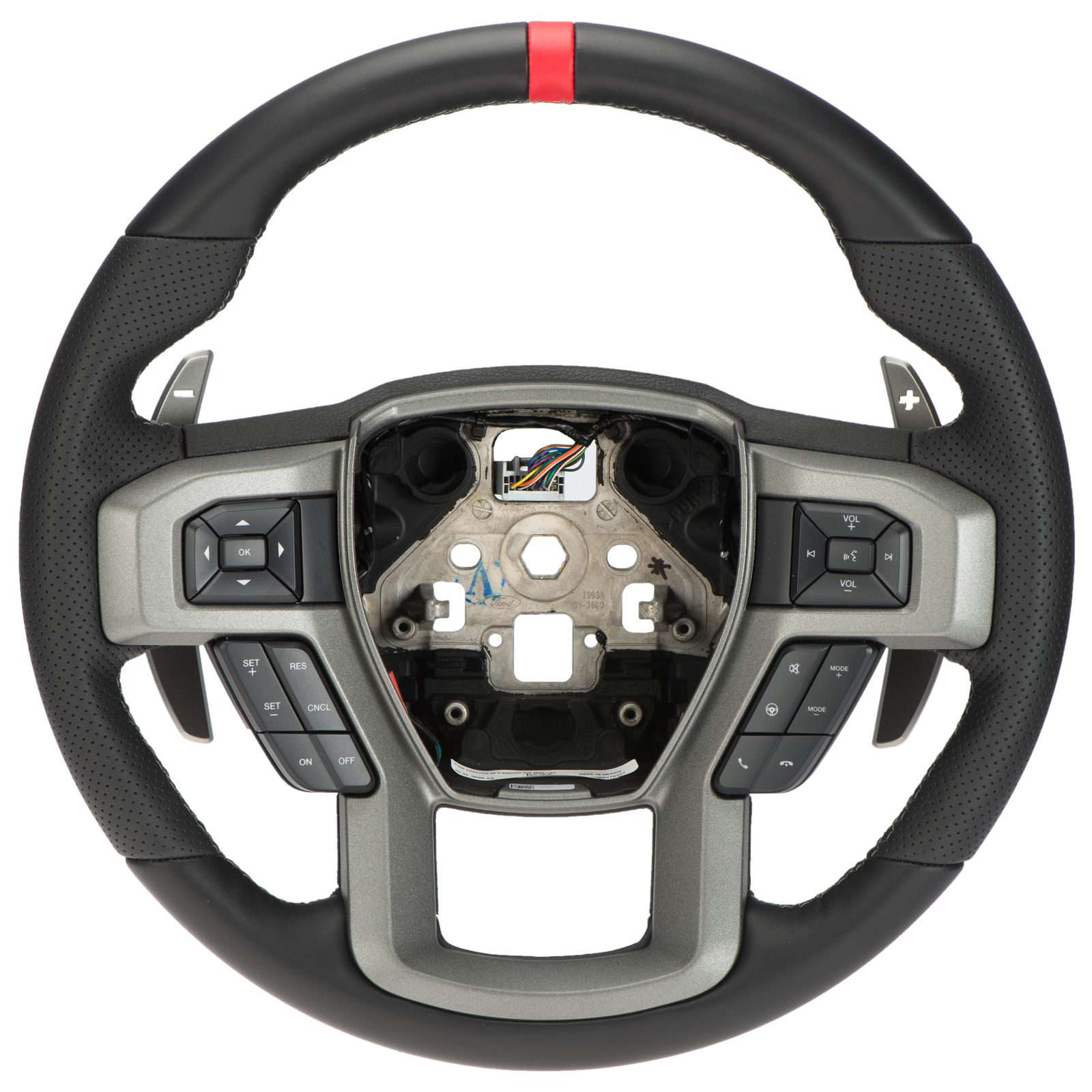 img Steering Wheel / Radio + Cruise Controls is a direct fit for the following:2017-2018 Ford F-150 RaptorNon-HeatedNon-Adaptive CruiseGenuine Ford Part Number: HL3Z-3600-AA