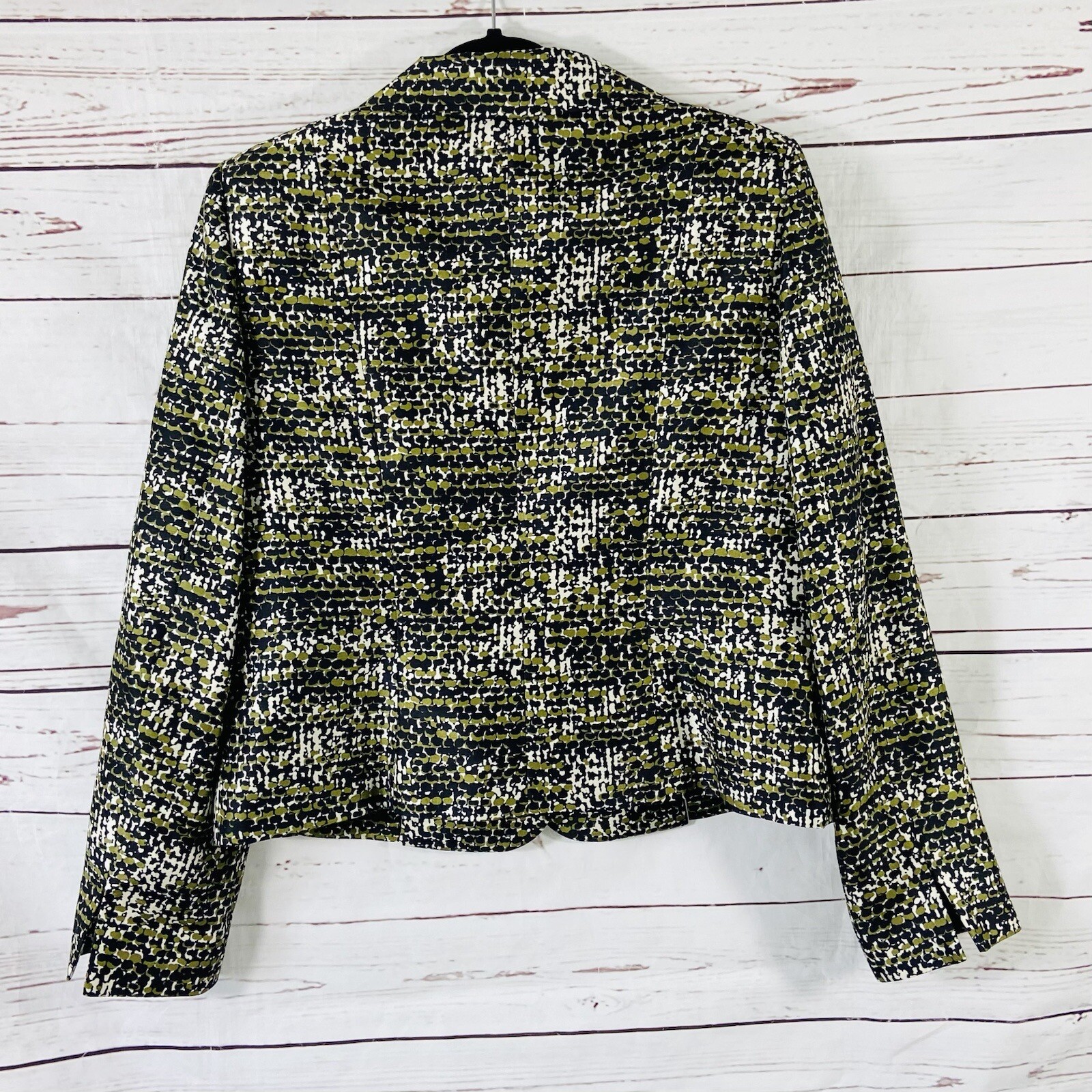 Le Suit 2PC Skirt Suit Women’s 10 Green/Black Multi Blazer Buttons Long Sleeve