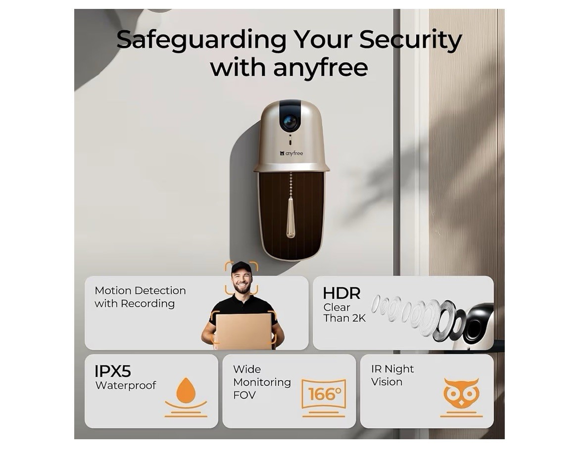 Doorbell Camera Wireless with Chime, HDR Smart WiFi Video Doorbell with PIR Motion Detection & AI Human, 2.4 / 5Ghz, Solar Assist Battery,Night Vision,2-Way Talk,SD Card & AWS Cloud StorageSolar-assisted Built-in Battery for Long Battery Life] The video doorbells camera with solar panel handles low-power operation. (solar doorbells it extends battery life, but does not replace USB charging to increase the power)[Unique Destruction Alarm and Privacy Protection] When someone deliberately attempts to disassemble the doorbell: Disassembly Alarm > Phone Action > Trigger Notification[SD Card Local Storage] Doorbell Install SD to keep motion detection no monthly fees. Local storage supports SD cards up to 128GB (SD card not included), doorbell camera wireless no subscription[Unlimited Cloud Storage & Precise AI Recognition] wireless doorbell Identifies family members, couriers, and others, and sends personalized notifications (Records clips up to 15 seconds each) with content smartly categorized based on visitor type and event nature(90-days free)[Supports 2.4GHz/5GHz Wireless Wi-Fi and 3280ft Long Distance Connectivity Doorbell] Powerful dual-band Wi-Fi for faster, smoother connections. Advanced Wi-Fi HaLow enables barrier-free long-range connections up to 3280ft (1km) with 10 times the penetration[Two-Way Audio/Live View/Video Recording/Customizable Ringtones/Real-Time Notifications] Doorbell camera wireless no subscription remotely communicate with visitors or strangers via the Mobile App, no matter where you are. Doorbell with chime[Clear HDR Night Vision] Wireless door bell Offers perfect clarity both day and night, allowing you to see packages and visitors clearly and miss no detail. Video doorbells without subscriptions[Effortless Installation & User-friendly APP] There are two methods of mounting, one is screwed on the wall and the other is 3M adhesive stick on the wall[Share As A Gift With 4 Family Members] Video doorbells for home, modern smart doorbells have gradually become part of home security systems, share moments of safety and fun with parents and friends. Door camera wireless for apartment[2025 Newly Redesigned Smart Doorbell] Features a Unique wind chime design, simply pull the chain to ring. A perfect blend of charm and utility. Doorbell Size: 6.8(L) × 6.2(W) × 14.4(H) in