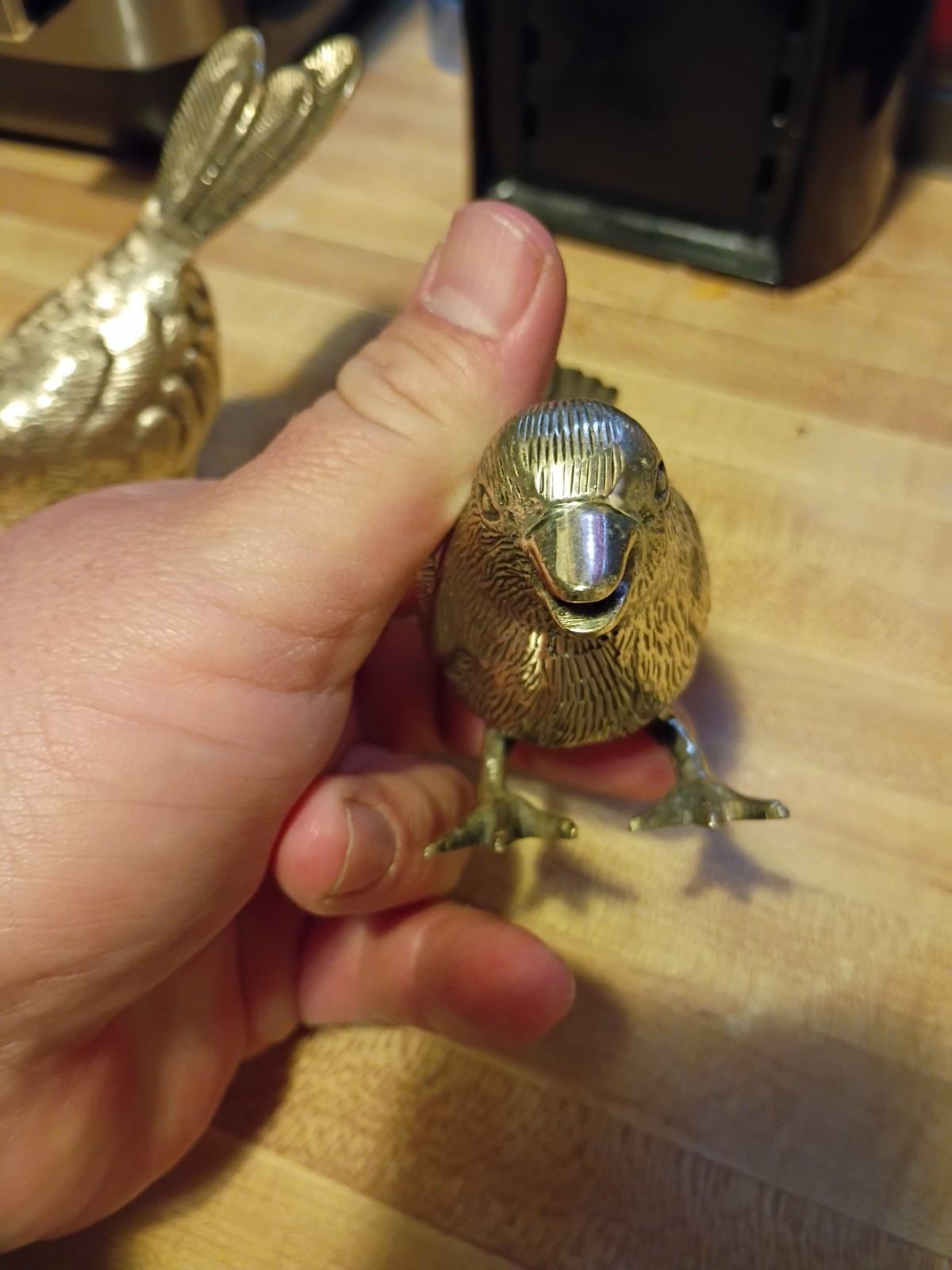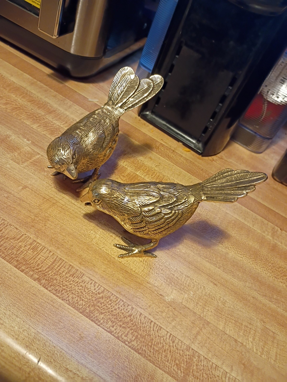 Pair of Vintage Antique EPNS Lacquer Silver Plate Bird Statue Figurines