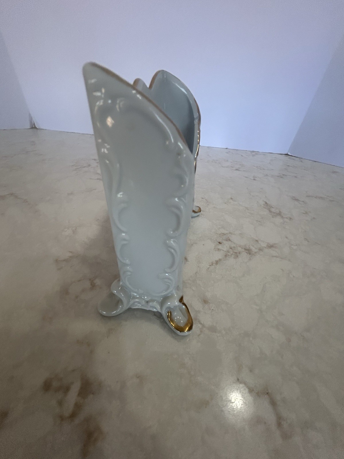 This vintage letter/stationary holder is a charming addition to any Victorian-style home décor. Handmade and handpainted, the ceramic piece features intricate details and is signed by the artist. Measuring 5 inches in height and length, with a width of 1.25 inches, this unique and decorative item adds character and functionality to a desk or shelf. Perfect for organizing letters or as a stylish accent piece in any room. Great condition; no chips or cracks.