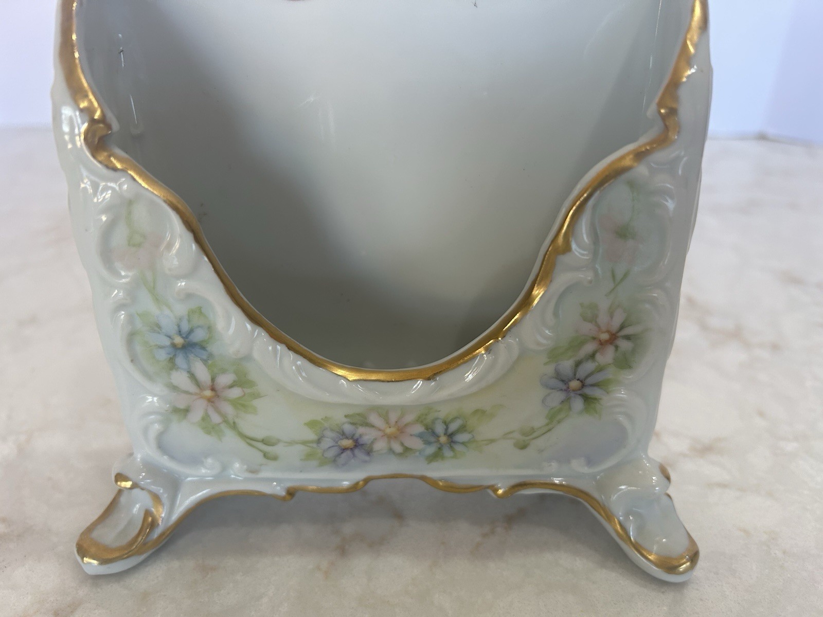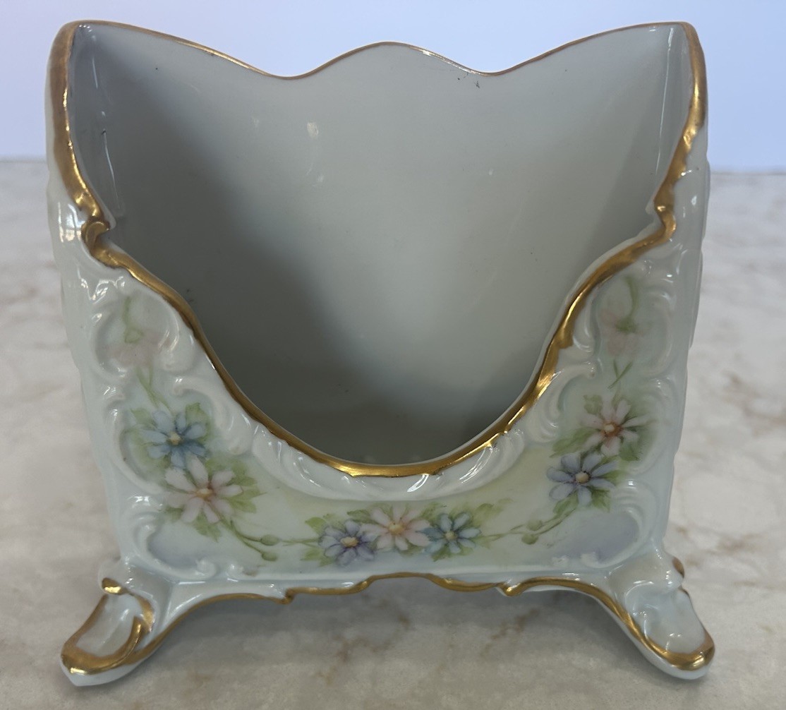 Vintage Handpainted Letter/Stationary Holder Victorian Style Footed Signed 5”x5”