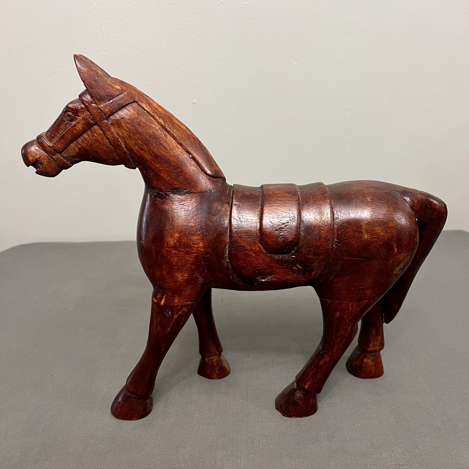VTG Hand Carved Wooden Horse W/ Detailed Halter & Saddle 14x3.5x12” Specs