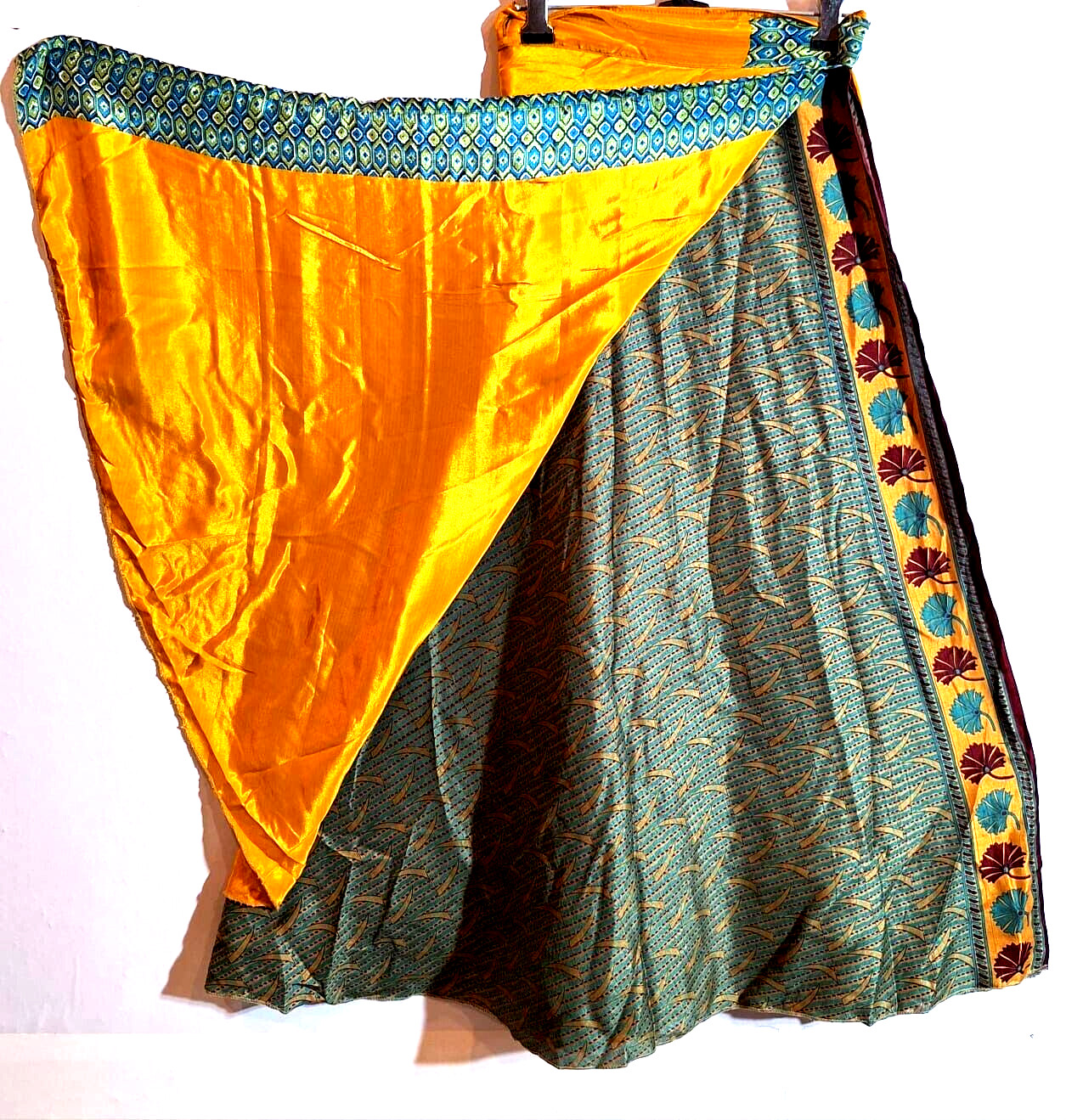 Incredible-art Vintage Silk Sari Magic Wrap Skirt Reversible Double Layer skirt