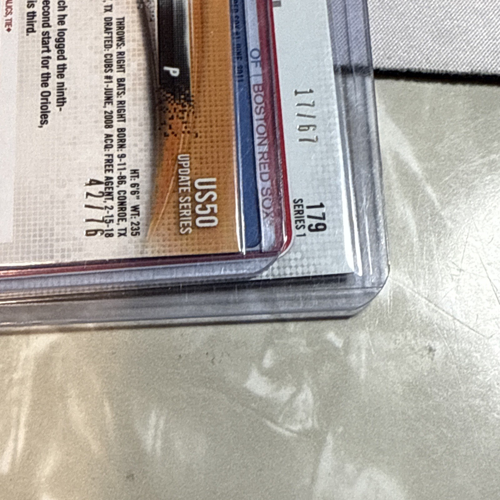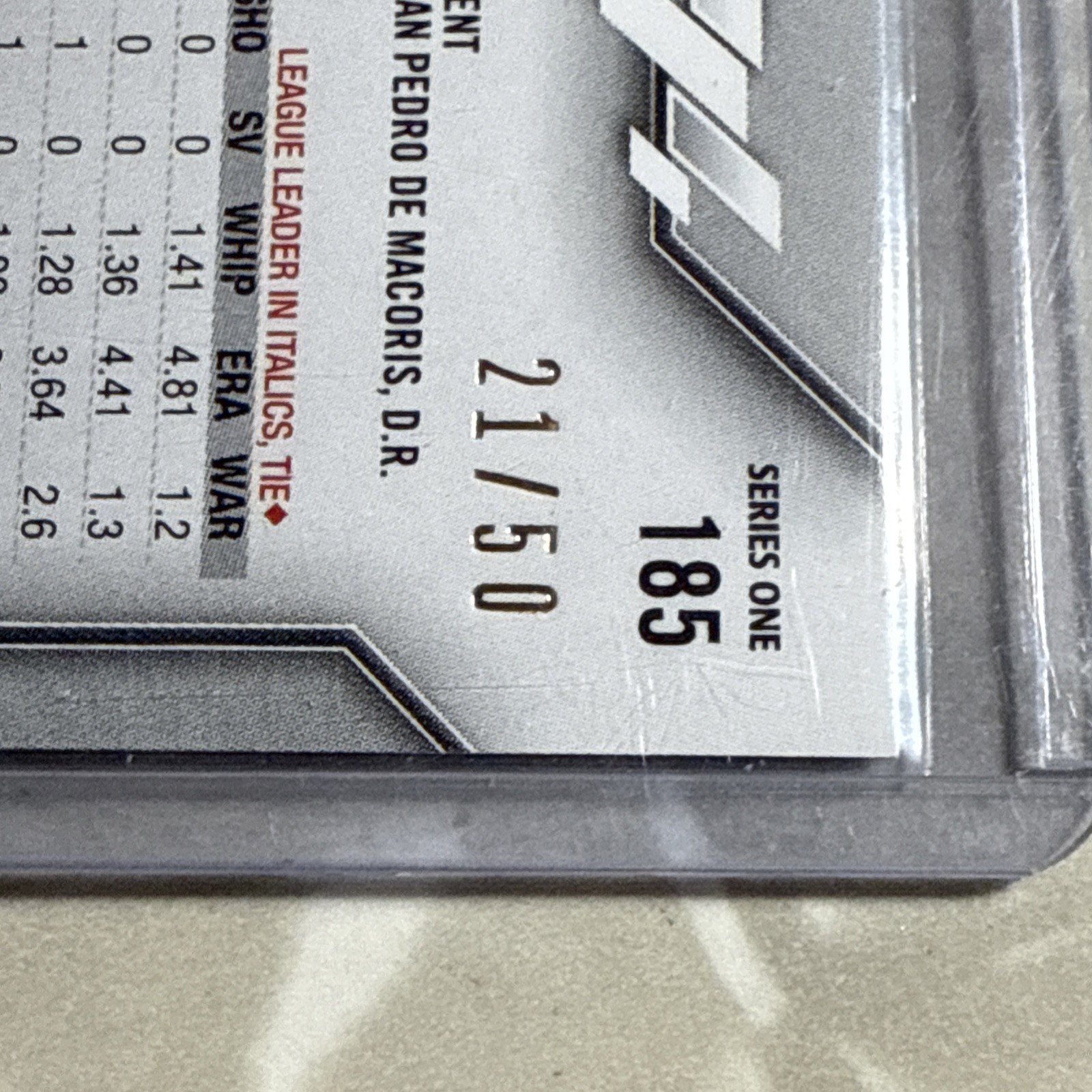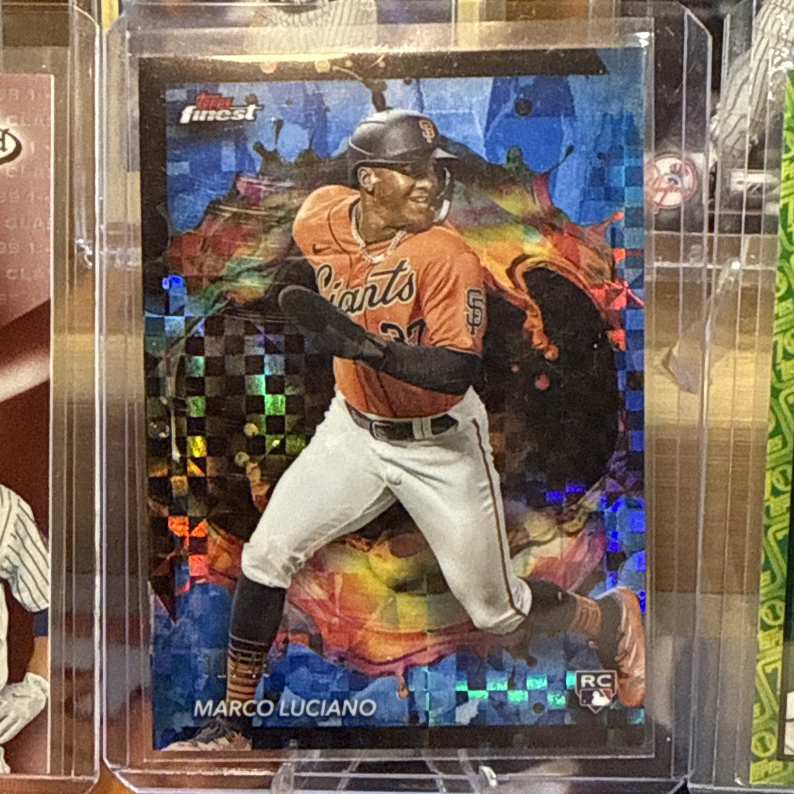 This product is a lot of 15 MLB trading cards that are low numbered, all numbered to 99 or lower. It includes cards featuring players like Corey Seager and Aroldis Chapman, with hard-signed autographs on card stock. Manufactured by Topps in the United States, these standard-sized cards are original and from the 2020 season. Perfect for baseball fans and collectors looking for unique and limited edition cards from the MLB World Series.