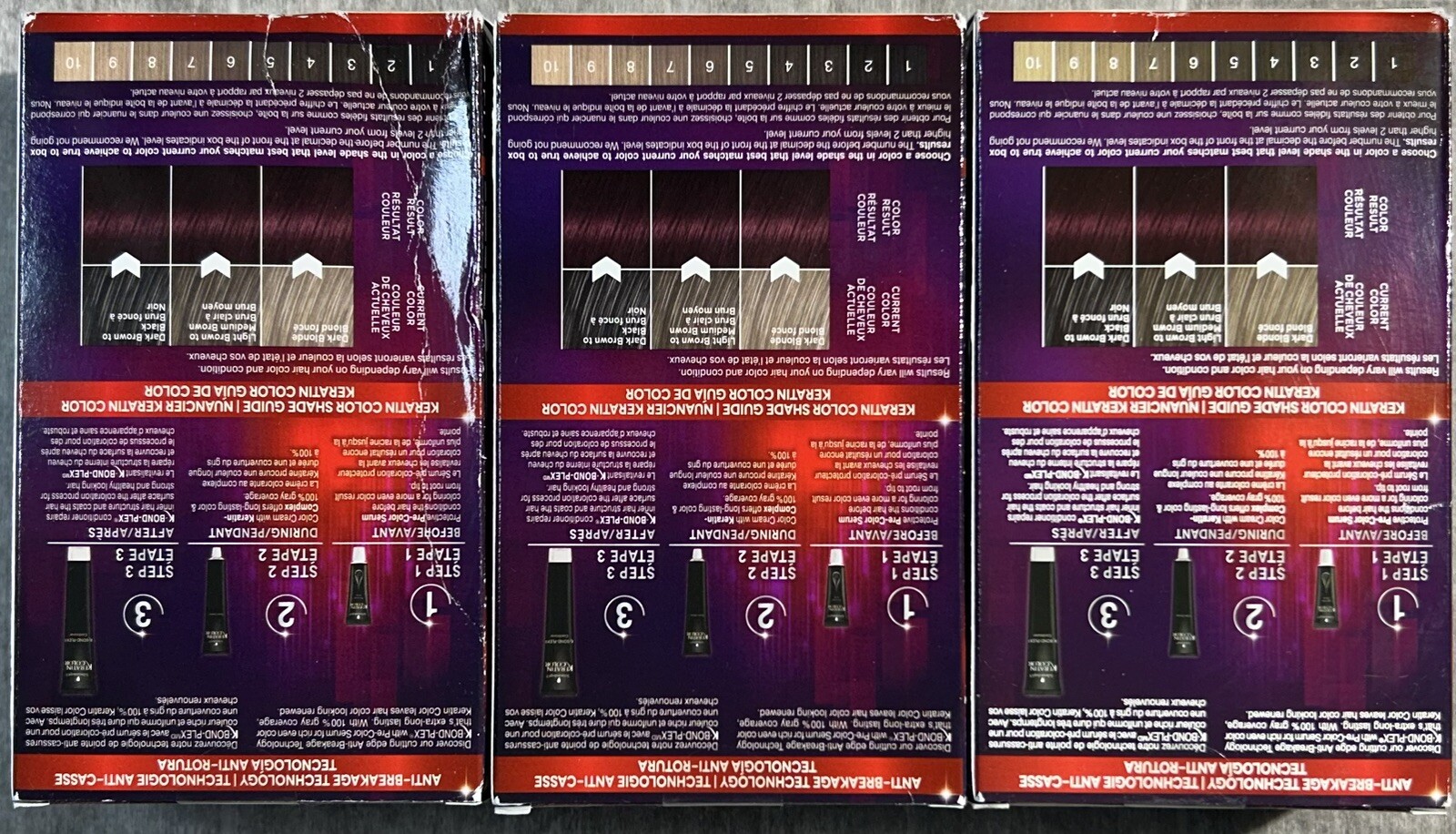3 Boxes Schwarzkopf Keratin Color Permanent Hair Color #1.8 RUBY NOIR Specs