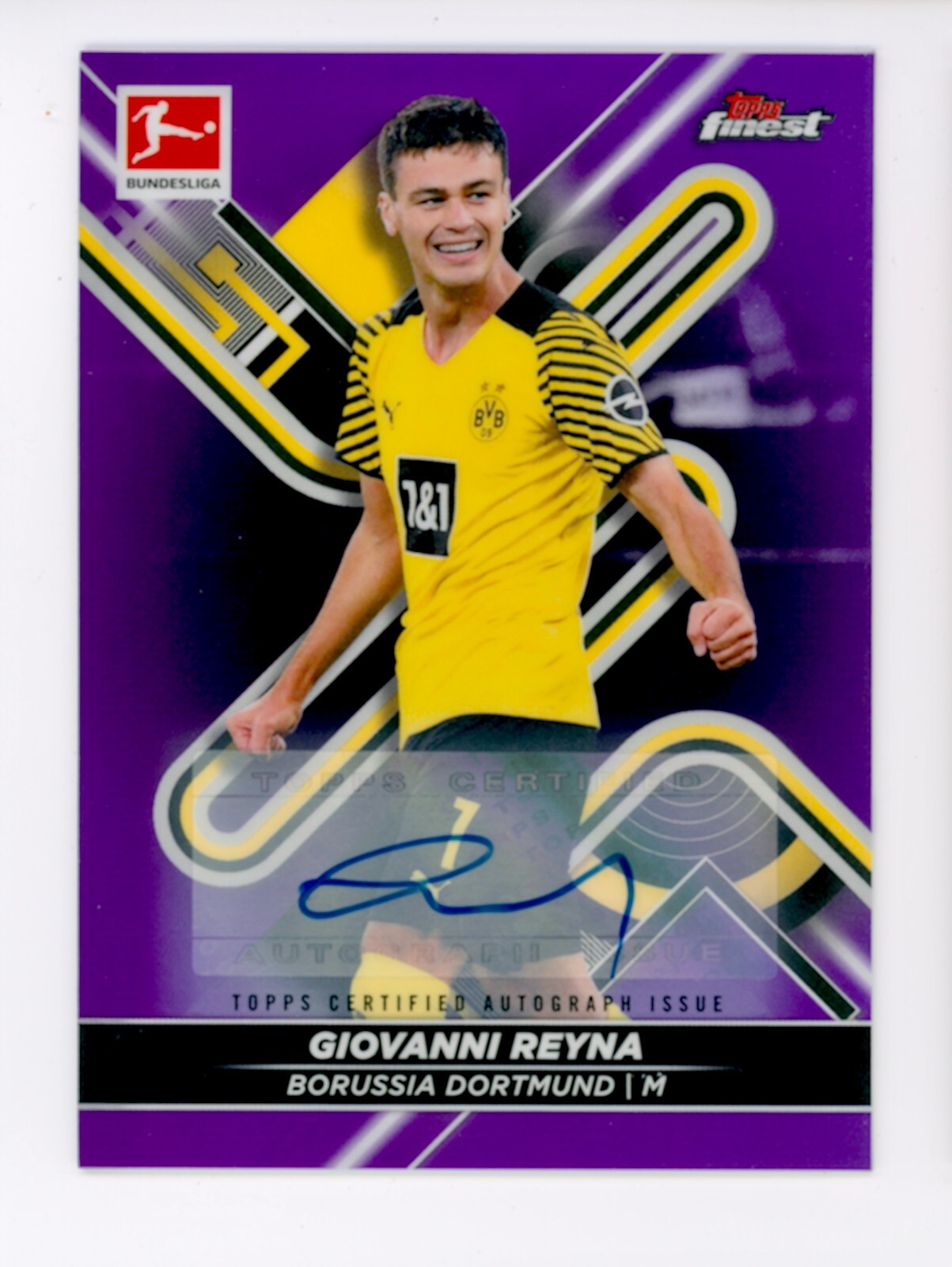2021-22 Giovanni Reyna Topps Finest Purple Refractor Borussia Dortmund Autographed Soccer Memorabilia Card 59/99.Please check out some of my store and other cards, I have a massive collection and am just starting to sell some of the cards.Also, please check out our Instagram soccercardsps to see some of the other cards we have and to keep updated with everything new we get in stock.