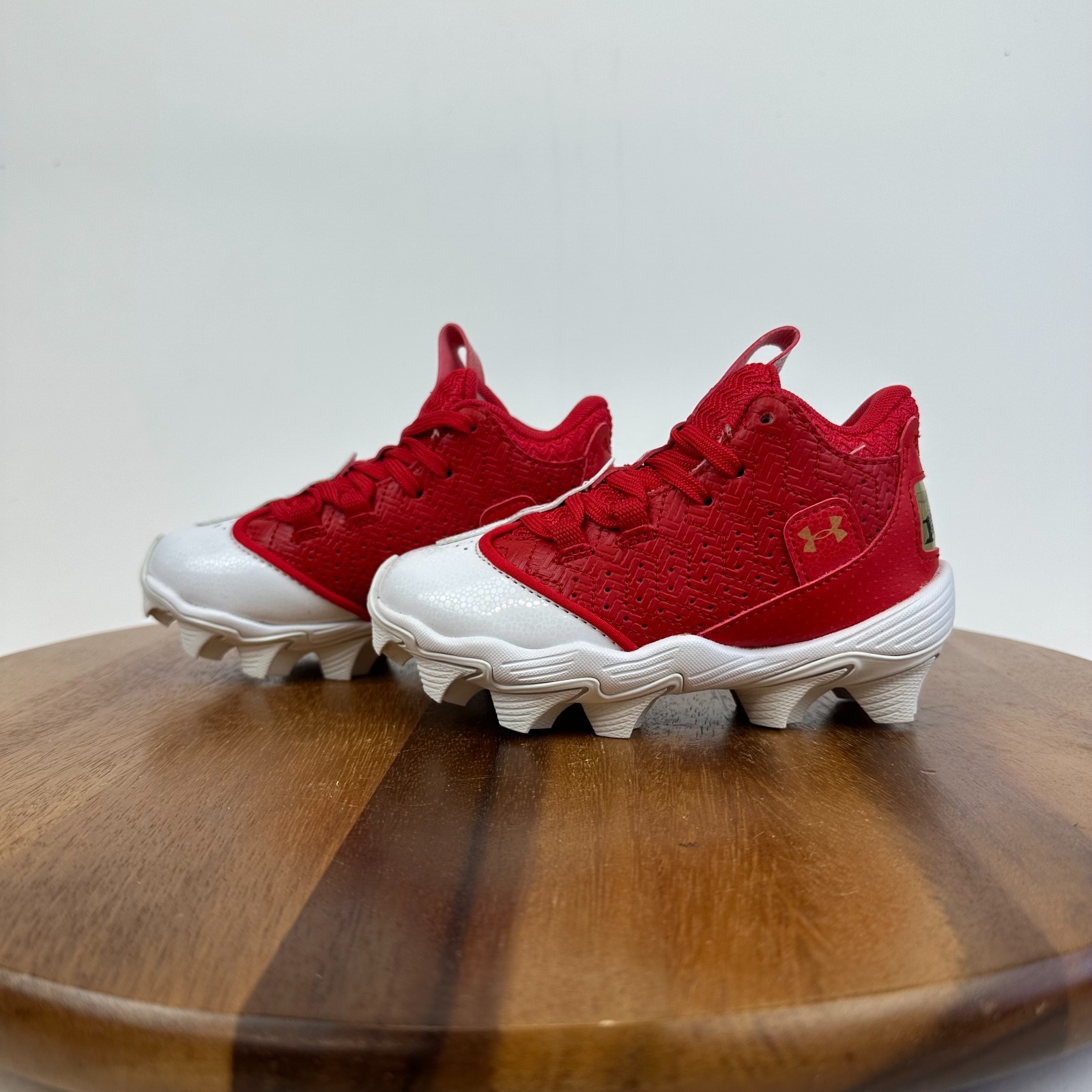 New Little Kids Under Armour Harper 9 RM JR Red Mid Baseball Cleats Size 10 C