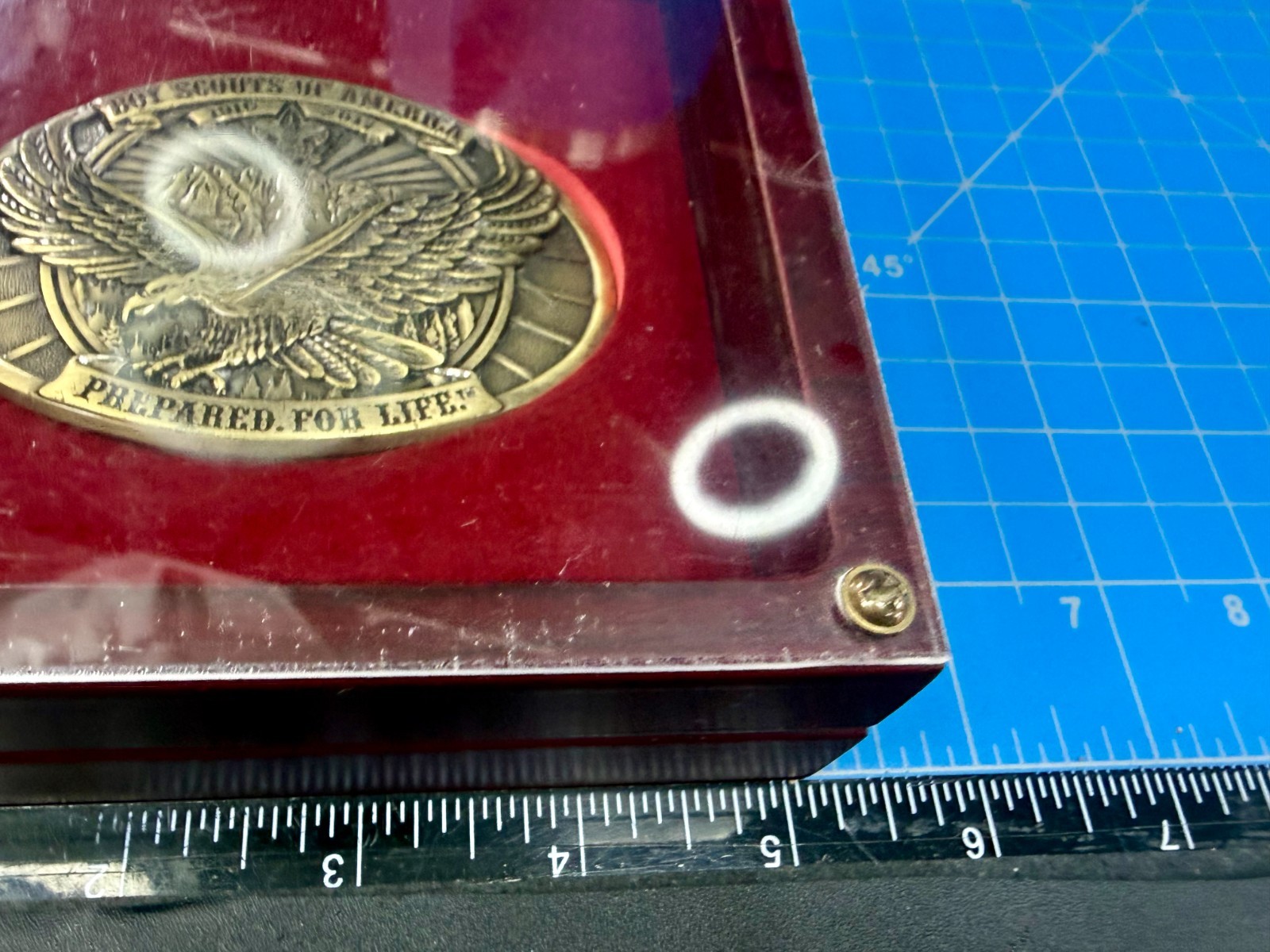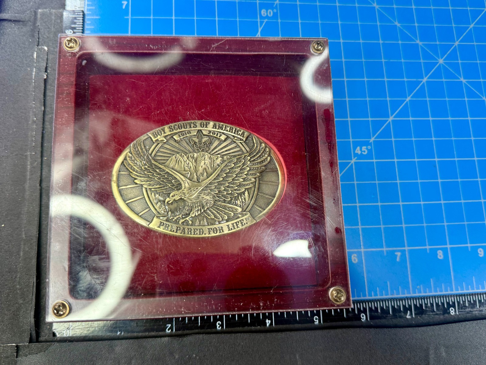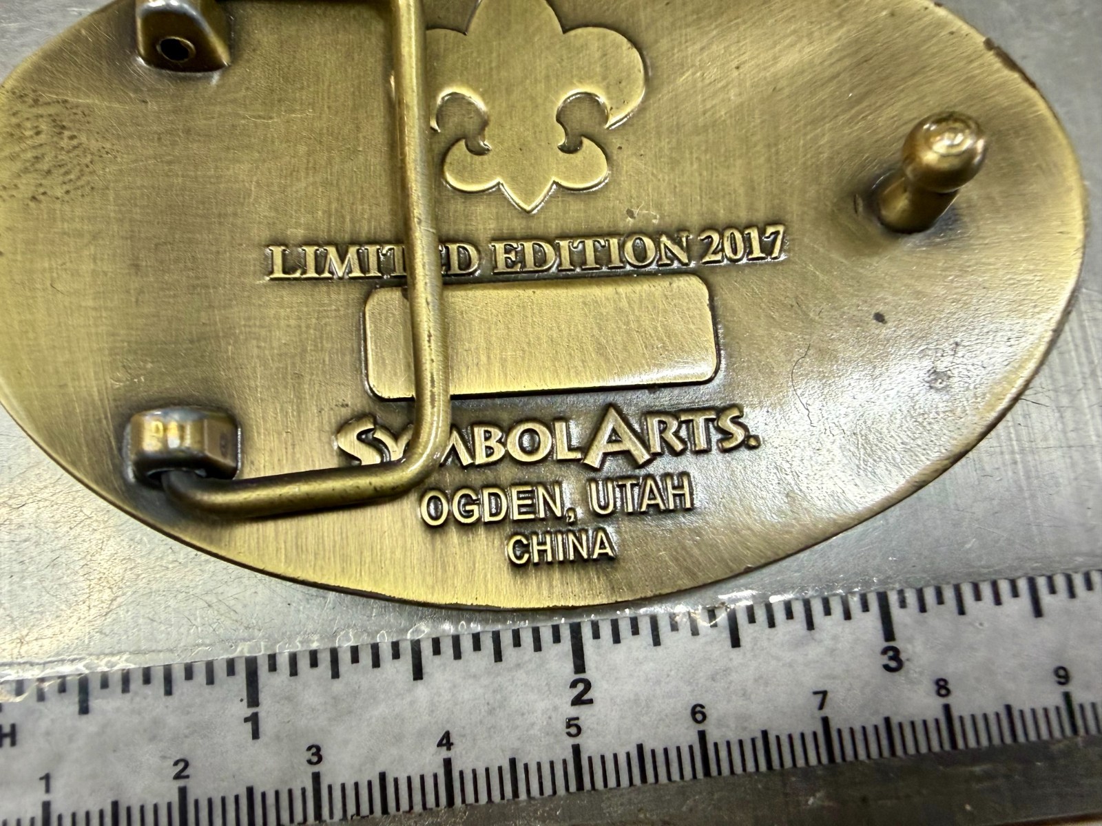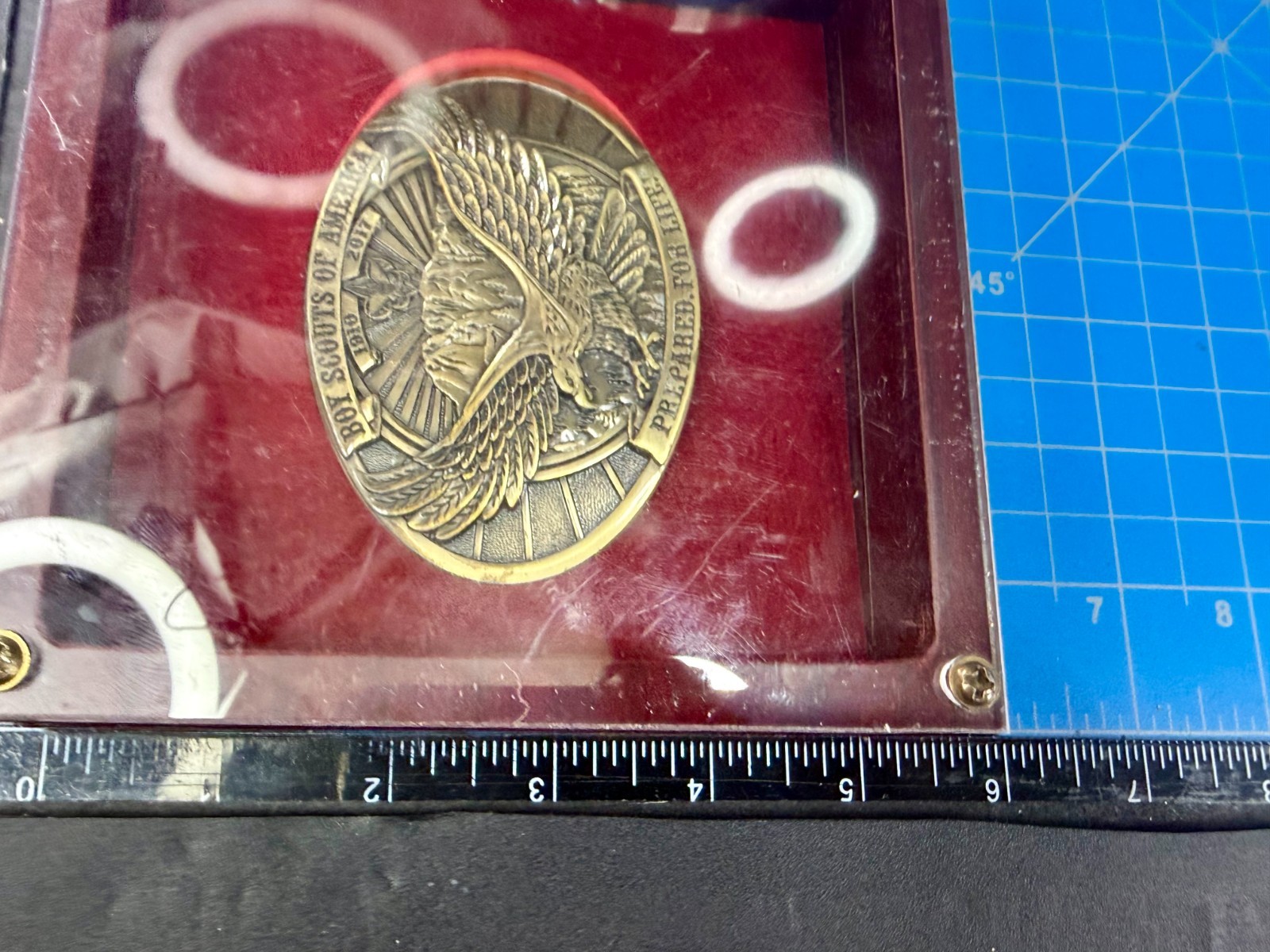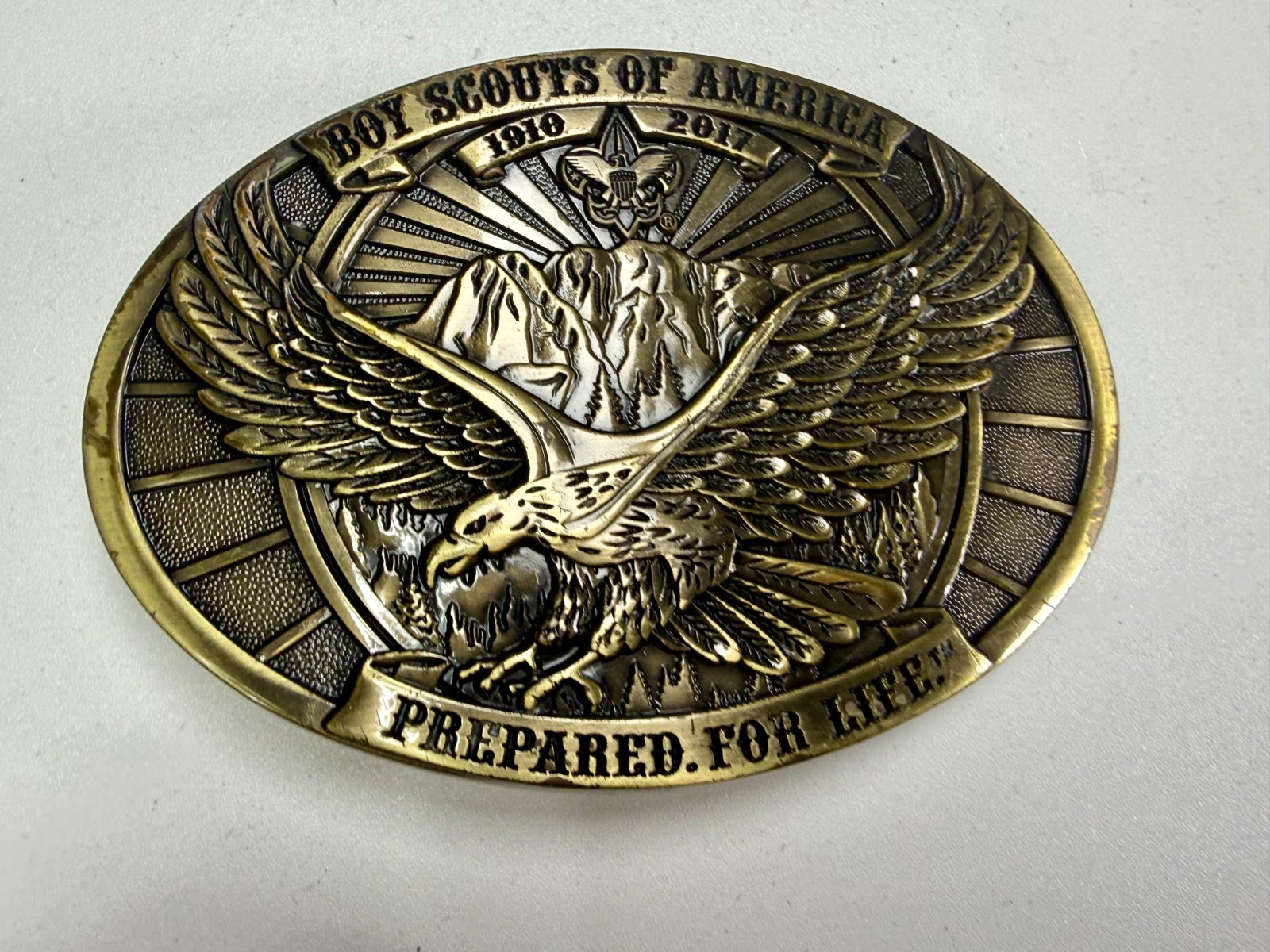 This Eagle Scout BSA (Boy Scouts of America) “Prepared for Life” 1910–2017 belt buckle is offered as a collectible. The exact buckle you will receive is shown in the listing photos, with condition, size, color, and dimensions documented there. Condition details are provided visually, so please review all images closely for wear and finish. Free shipping is included with purchase. Check the listing for details.