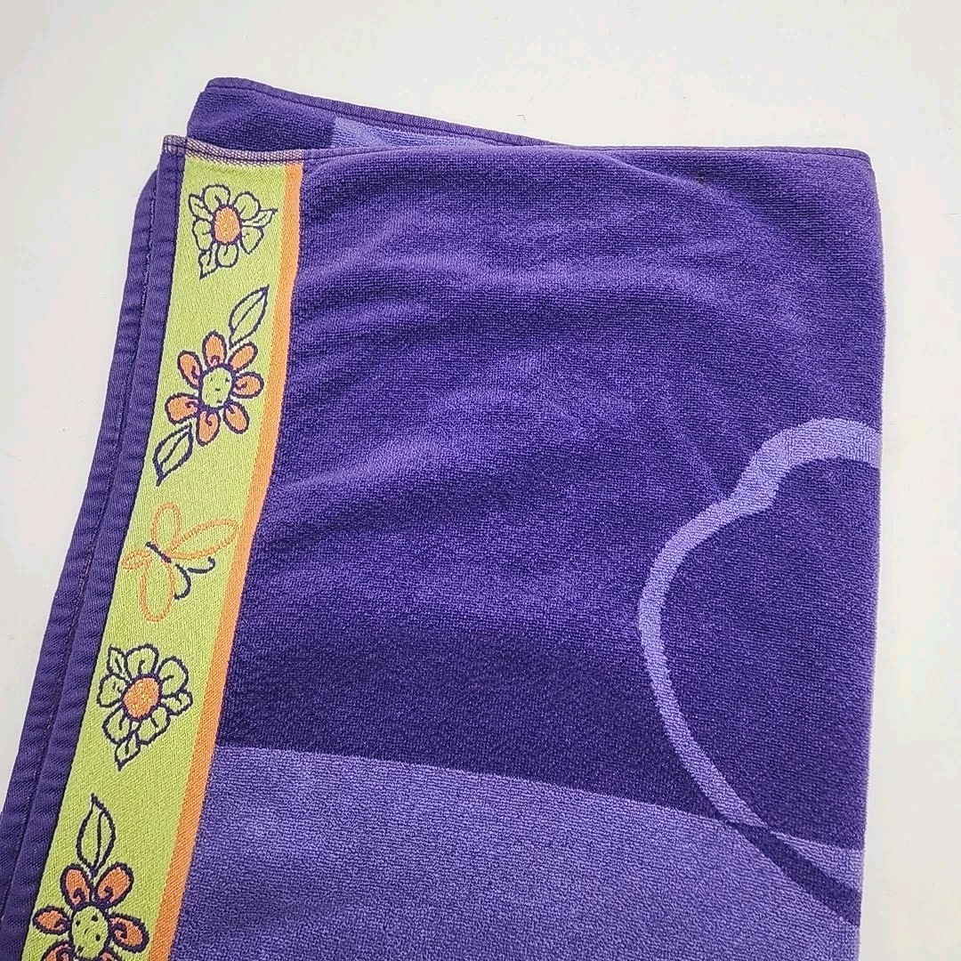 Cecil Saydah Beach Towel 100% Cotton Purple Floral 60"x35" Large Heavy Vintage