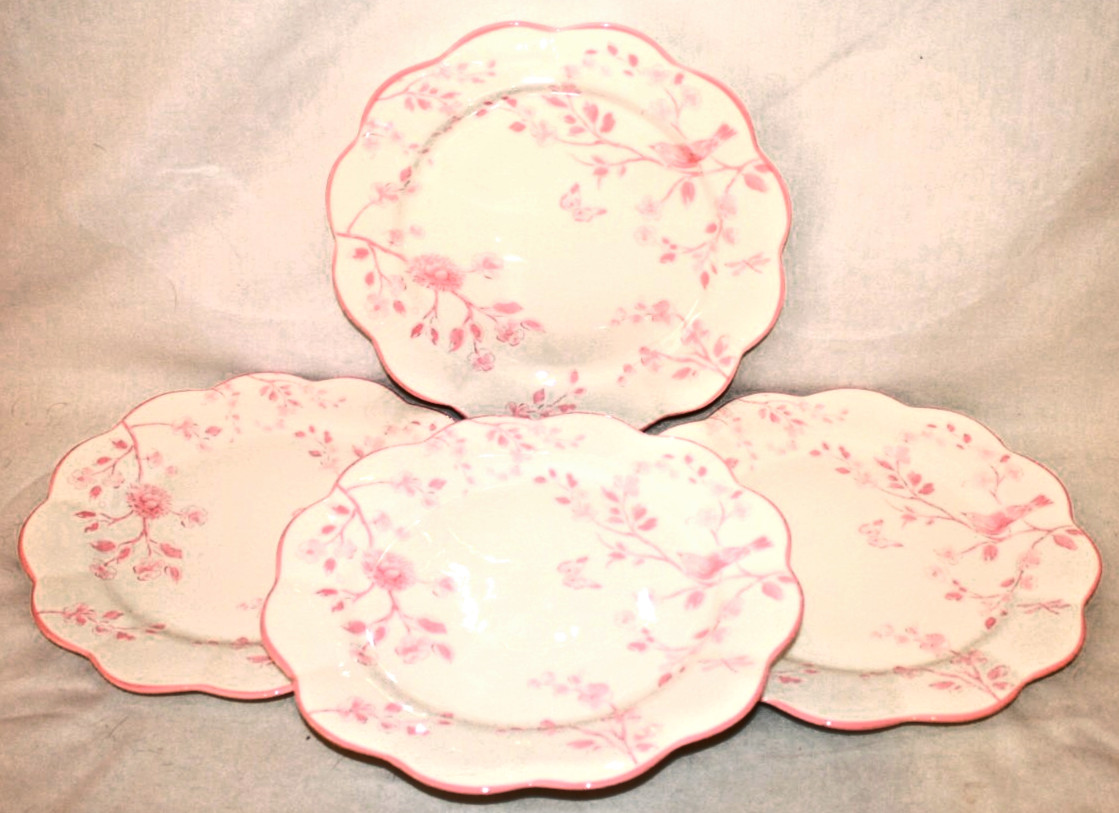 Grace Teaware Porcelain 11" Dinner Plates Pink Floral with Bird & Nest New