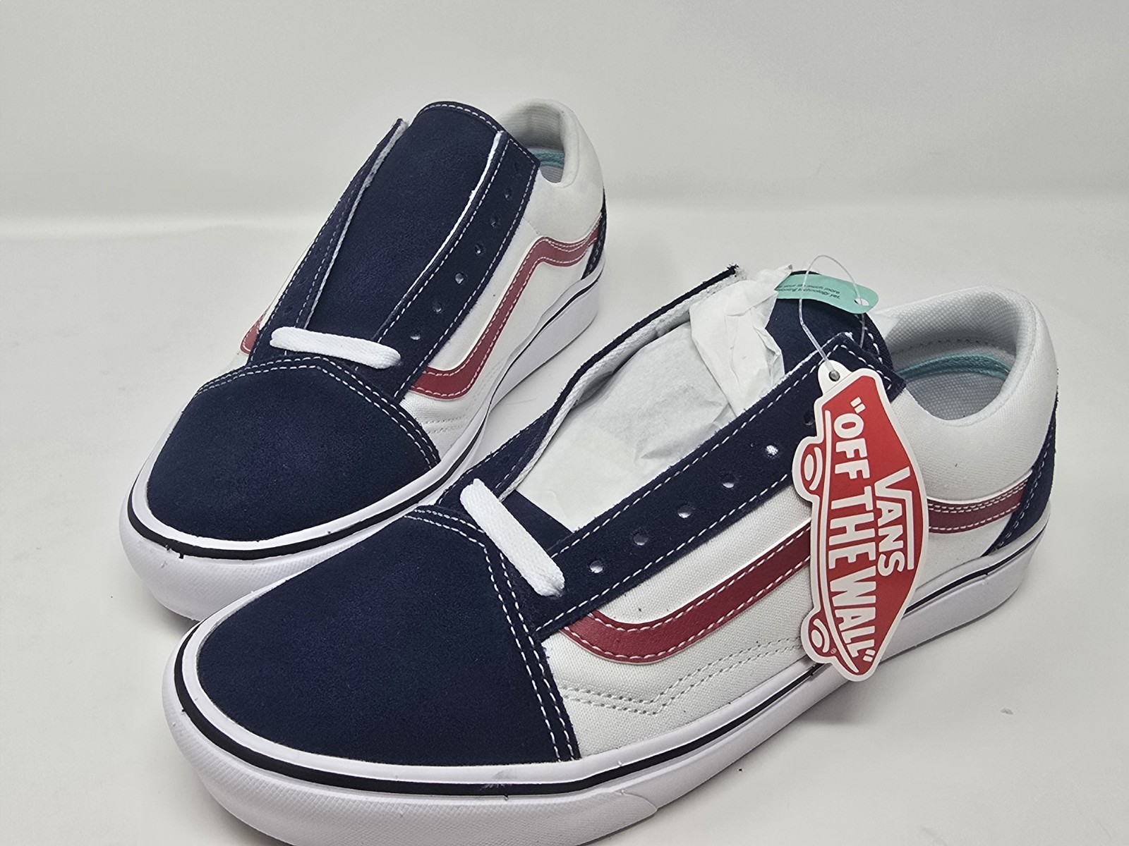 size of 8. The style code for this shoe is VN0A3WMA49S, and it was released in 2021 as part of the VANS Old Skool product line. Whether you're skateboarding or just running errands, these VANS ComfyCush Old Skool sneakers are a must-have addition to your wardrobe.