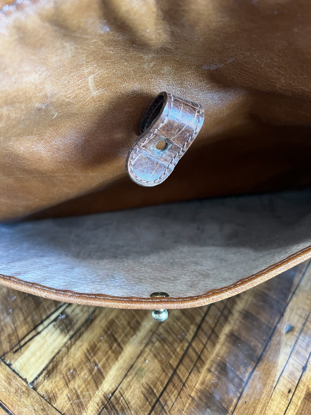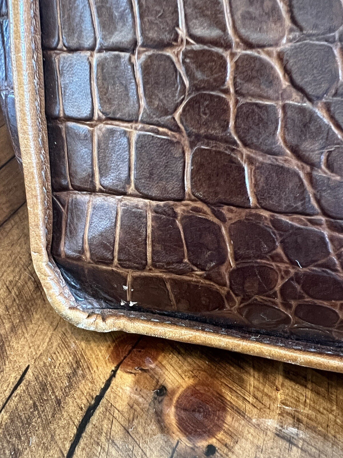 Vintage Brahmin Brown Leather, Crocodile handbag, Medium Size Purse