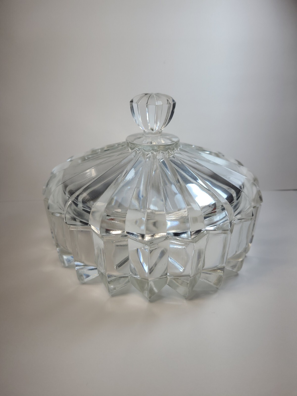 Vintage Clear Glass Candy Dish & Lid 6.25"w. 4.75"h. Beautiful Lidded Dish