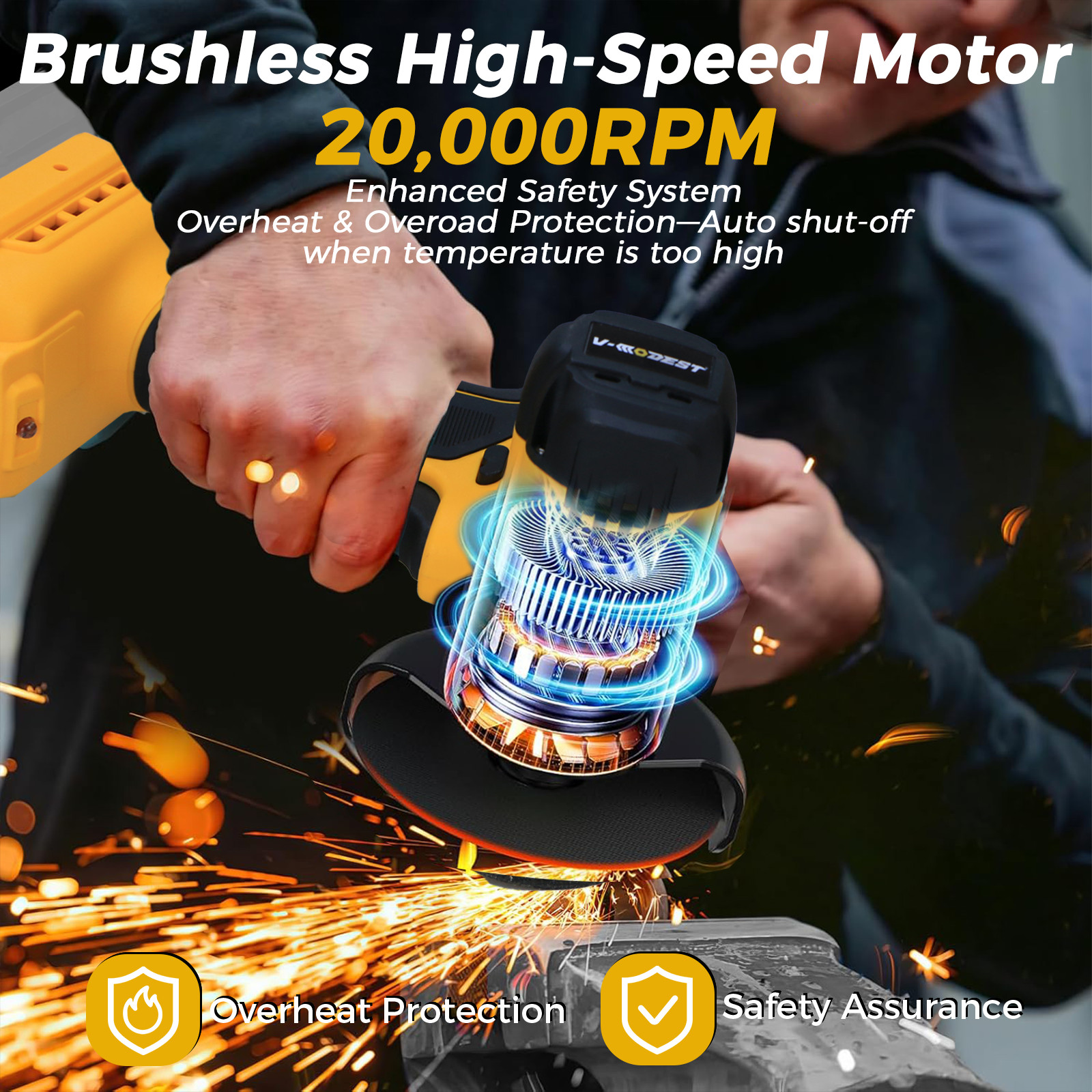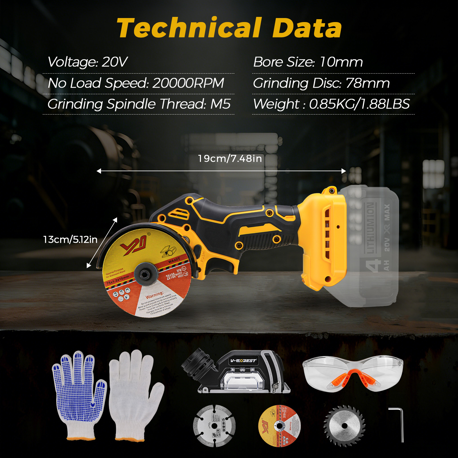 [Compatible with Dewalt DCB series batteries]: V-MODEST Cordless 3 inch Cut Off Tool for dewalt 20V/60V Lithium-ion Batteries DCB206 DCB205 DCB204 DCB181 DCB182 DCB200 DCB203 DCB205-2 DCB204-2 DCB206-2 and more. Easy to use even when there is no power supply outdoors, as long as you bring batteries. And you no longer need to be tethered to an outlet or struggle with tangled cords, making it easy to work in tight spaces, on job sites, or outdoors and family. [Powerful Brushless Motor]: *Equipped with a high-efficiency brushless motor, delivering 20000 RPM no-load speed and 25mm cutting depth.* [ Full-Size 76.2mm Disc Capacity]: Supports full 76.2mm (3-inch) discs for cutting, grinding, and polishing metal, stone, wood, etc. [REMOVABLE DUST SHROUD ]: Can be connected to a vacuum cleaner for a cleaner workspace (vacuum cleaner not included). However, this tool rotates only counterclockwise during operation. Shipping It usually takes 1-2 days to process the order. Standard express delivery shipping, UPS\USPS\FEDEX\DGM, etc. We ship to your eBay or Paypal address. Please make sure your eBay and Paypal address is correct before you pay. Changing the delivery address after the package sent is not accepted, thank you! Refund Please be sure to contact us to obtain the sender's address before returning. Unless there is a quality problem, the opened and installed items are not allowed to be returned, which should be supported by evidence. All returned items must be properly packaged in their original condition and contain all the items originally provided. Contact us Your feedback is very important to us, please leave us a positive feedback with all 5-star for the Detailed Selling Rating when you received the item. If there is some problem about the product, please take communication with us before leaving neutral/negative feedback or opening ebay/paypal case, we will do our best to resolve your problem. About us Our normal working days are Monday to Saturday, from 9 am to 6:30 pm Beijing time. We reply to your emails ASAP, however, due to high volume of daily incoming emails and time zone difference. All pictures are taken by us in kind, there may be