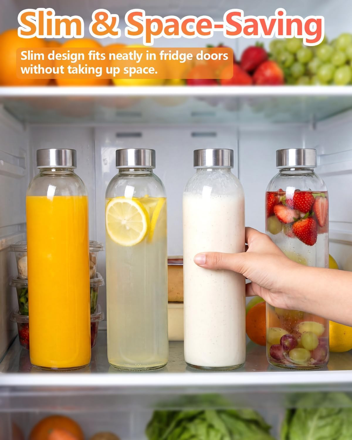 DURABILITY & REUSABLE & HEALTHY QUALITY: Zukro 24 oz juicing bottles are made from premium quality food-safe thick glass with superior chemical and impact resistance, which is BPA and Lead free. These reusable glass bottles with lids are a sustainable choice for enjoying your favorite juices and supporting a healthier planet. The juicing bottles reusable glass are designed to be super tough and withstand a long time of use. Say goodbye to disposable cups and contribute to a greener environment.GLASS BOTTLES WITH STRAW FOR JUICING, WATER AND MORE: Durable stainless steel lids with air and water-tight seals, it’s completely airtight to keep your beverage fresh without any worry of spills and oxygen can’t get in to break down the enzymes and ruin your juices. Toss this glass water bottle in your bag or car and get a healthy start to your day with a juice, smoothie, milk, protein shakes, ice tea, milkshakes. This 100% leak proof glass bottle will never leave a leaky messSTAY HYDRATED WHEREVER YOU GO: The slim and portable design means you can take your glass juice bottles with cap everywhere, in kitchen at home or in office, perfectly for garden parties, homemade drinks, picnics, school, work, gym, fitness and yoga. Easily store in the fridge, lunch bag or car cup holder. These Zukro glass water bottles is dishwasher & Fridge safe, easy to fill and clean. This clear glass helps you quickly spot the drink you're in the mood forSAVE MONEY WITH THIS VALUE PACK: Juicing Kit Bundle includes : 4 pack Zukro clear glass juice bottles with airtight lids, a bottle cleaning brush for easy hand washing, a funnel helps you pour liquids inside the glass containers, 2 pc rubber silicone lids with straw hole, 2 pc reusable straw. Get our juicing bottles in bulk packs as gift for your whole family and friends.DISHWASHER SAFE AND AIRTIGHT LEAKPROOF: The easy care, dishwasher safe Zukro 24oz glass juice bottles set will surely please you! We focus on every detail of our products and safe packaging. If, for any reason, you are not satisfied with the juicer bottles, Please contact us