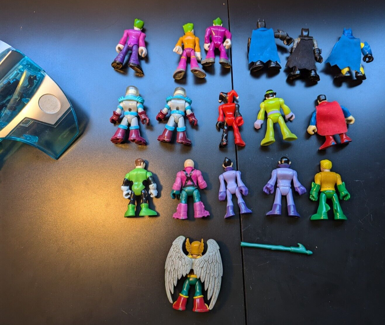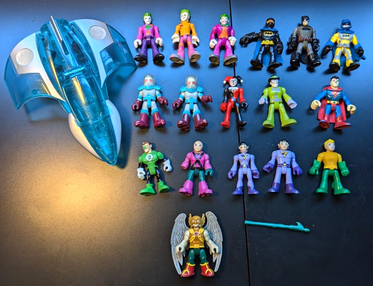 Good, clean condition overall. Condition of figures ranges from acceptable to excellent. See photos for varying degrees of wear (i.e. scuffs, marks). Come as is shown in photos, may be missing some weapons etc.Lot includes:Joker (3 different versions), Batman (3 different versions), Mr. Freeze x 2, Harley Quinn, the Riddler, Superman, Green Lantern, Lex Luthor (missing one hand), Wonder Twins Zan & Jayna, Aquaman & Hawkmanalso comes with Mr. Freeze jet*INTERNATIONAL BUYERS PLEASE READ* If you are not within the Americas (i.e. North America & South) OR reside on an island, please note that Canada Post's International - Ground shipping is unavailable. You may be able to select it due to a technical issue between eBay and their shipping partners, but I unfortunately cannot honor this shipping as it is not available to me when I go to purchase the shipping label. I have spoken to eBay customer care numerous times about this issue, and they have advised for me to include this disclaimer. If you are from overseas or reside on an island, likely the cheapest option will be Canada Post's International - Air. If you choose International - Ground and I am unable to choose the label, I won't be able to honor that shipping and will reach out to you to clarify the situation.