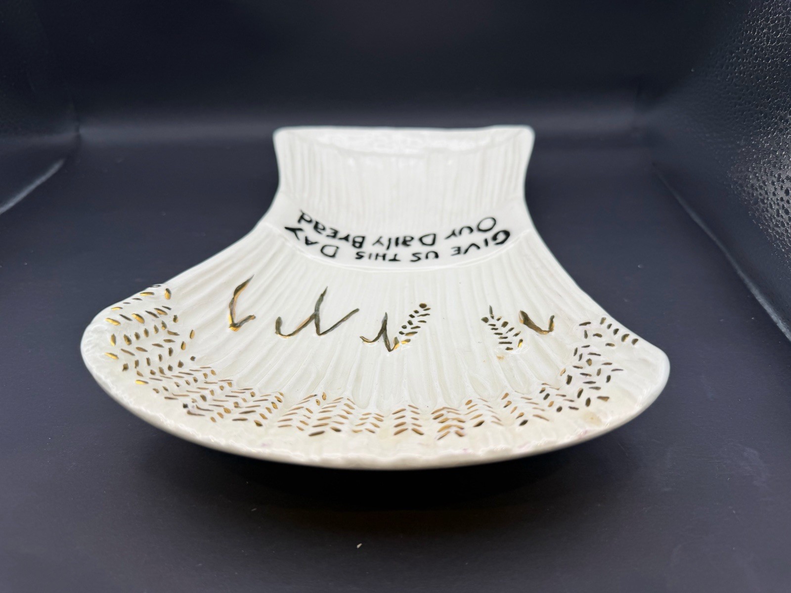 Vintage Ceramic Wheat Bread Display Stand “Give Us This Day Our Daily Bread”