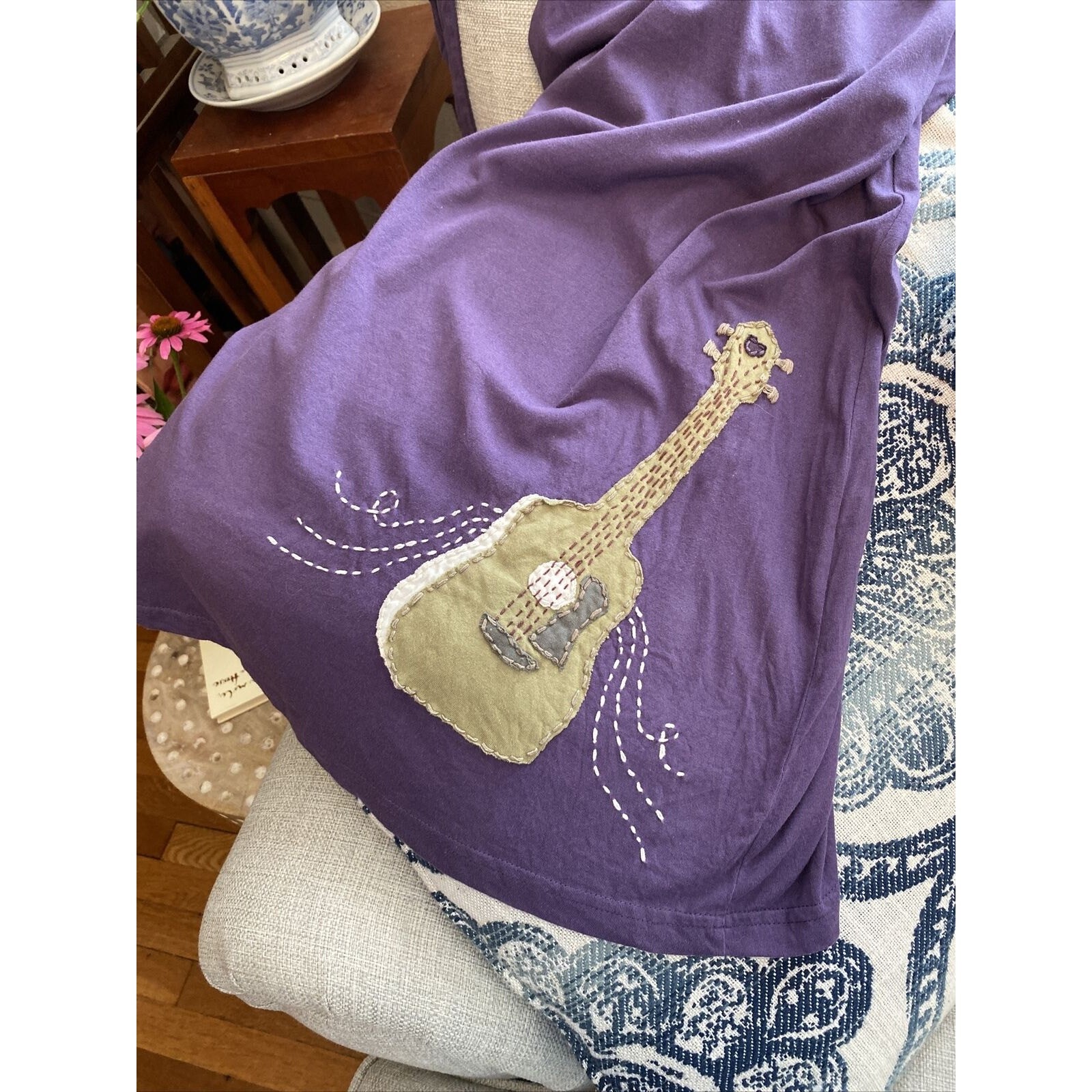 SYNERGY S Guitar Embroidery Organic Cotton Knit Dress Small Purple Eco Small Specs