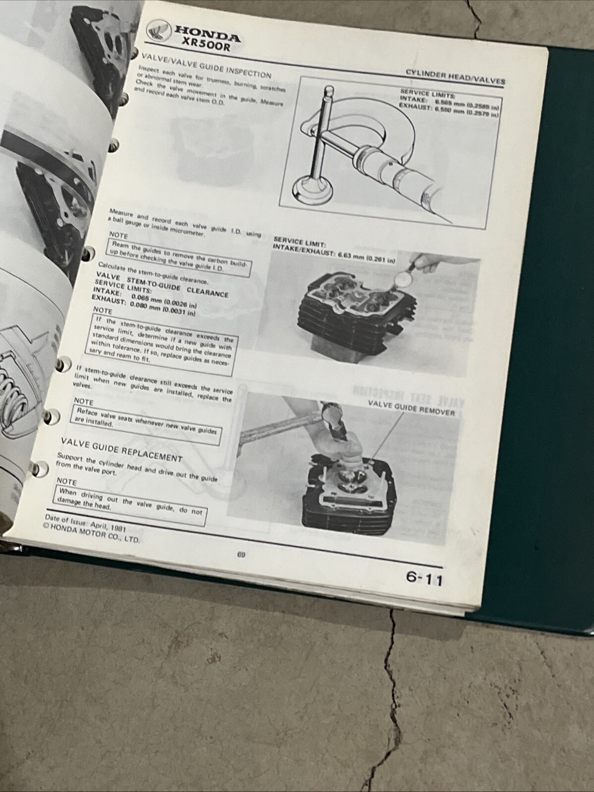 1981 1982 Honda XR500R Service Shop Manual P/N 61MA001