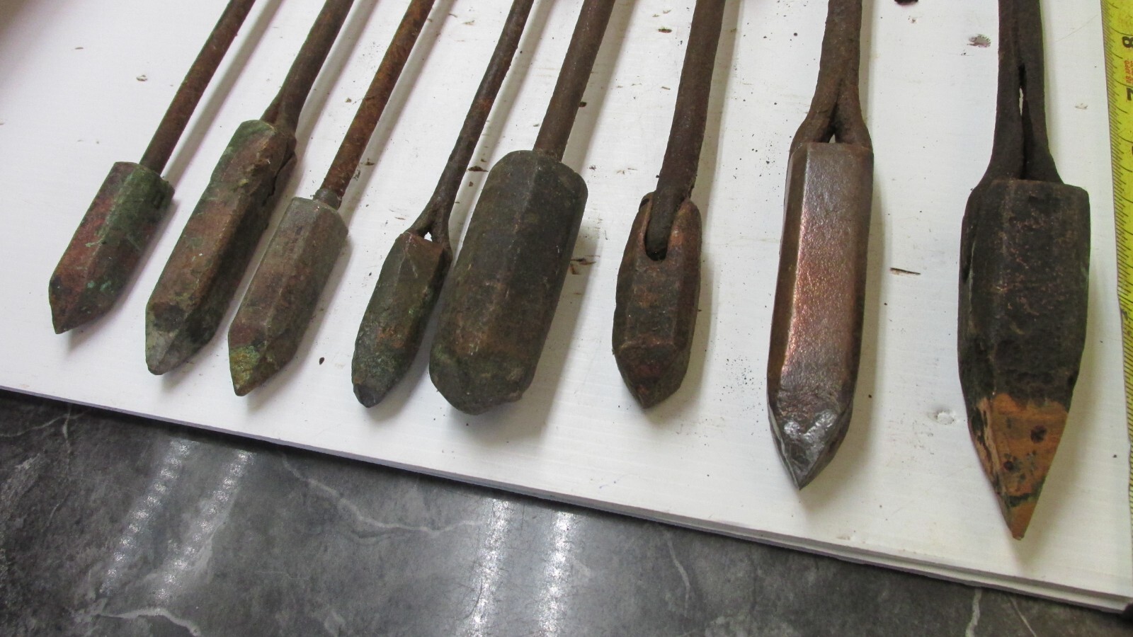 8 ANTIQUE OLD BLOW TORCH SOLDERING IRONS TOOL COPPER TIPS LOT C Specs