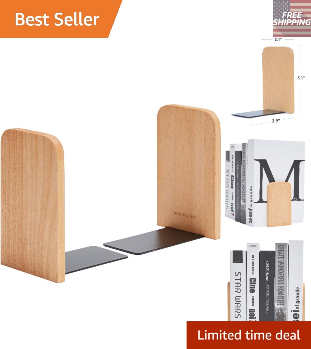 Non-Skid Bookends - Stylish Beech Wood Book Stand for Organized Shelves